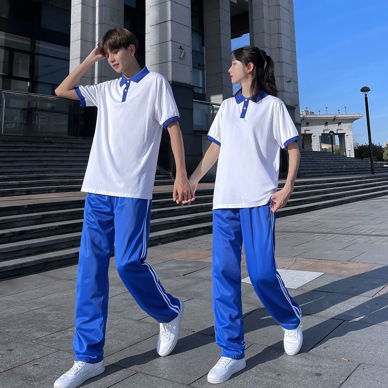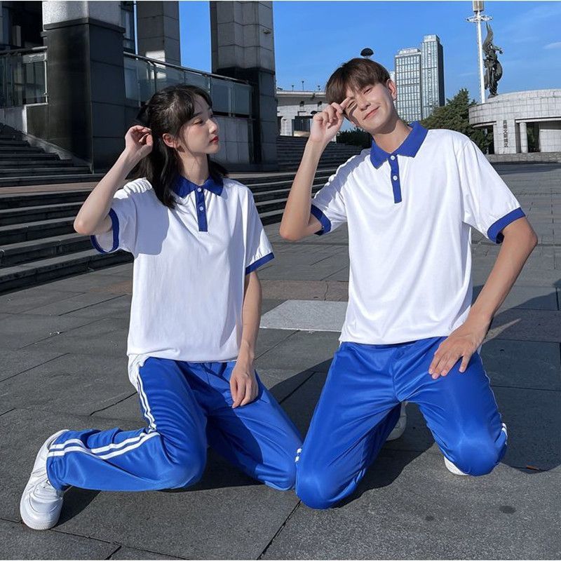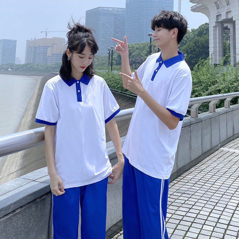 | nameOriginal | Early Summer Senior high school Students Blue Collar Polo Shirt School Uniform Men's and Women's Short Sleeve Top Loose Harajuku Graduation Class suit |