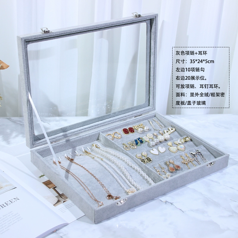 | nameOriginal | Earrings and earrings storage high-end jewelry box jewelry necklace ring display tray with cover dustproof large capacity |