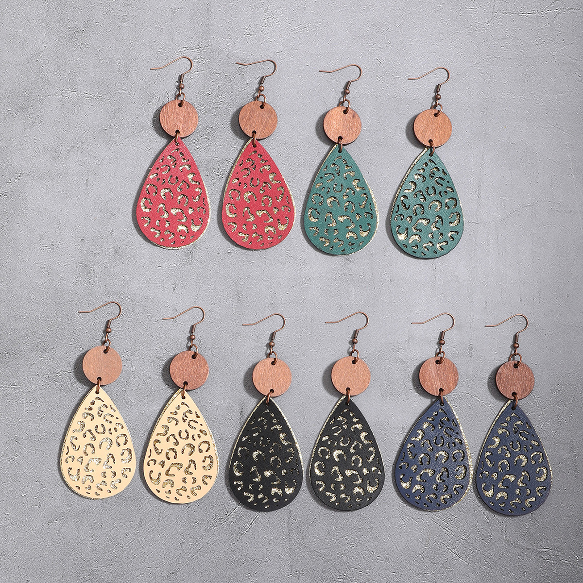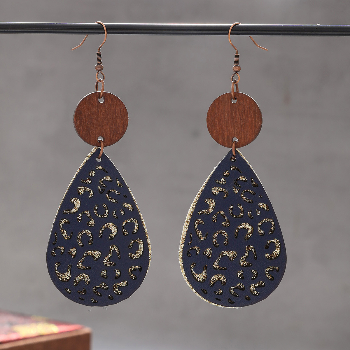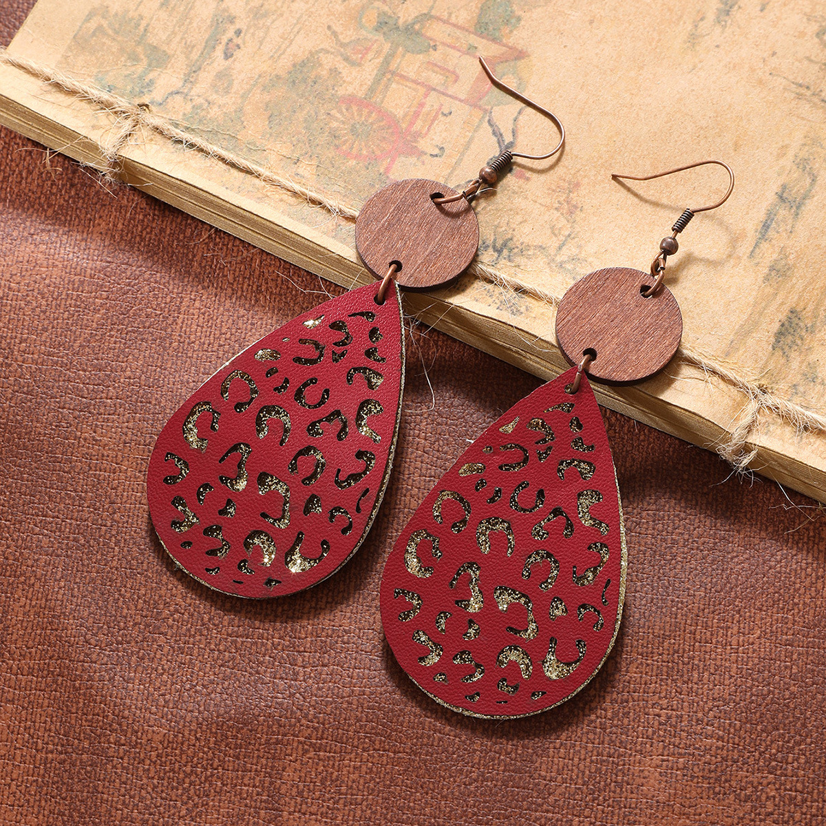 | nameOriginal | Earrings European and American wood eardrops water drop cross-border wooden Amazon vintage accessories jewelry hollow leopard grain wood chip |
