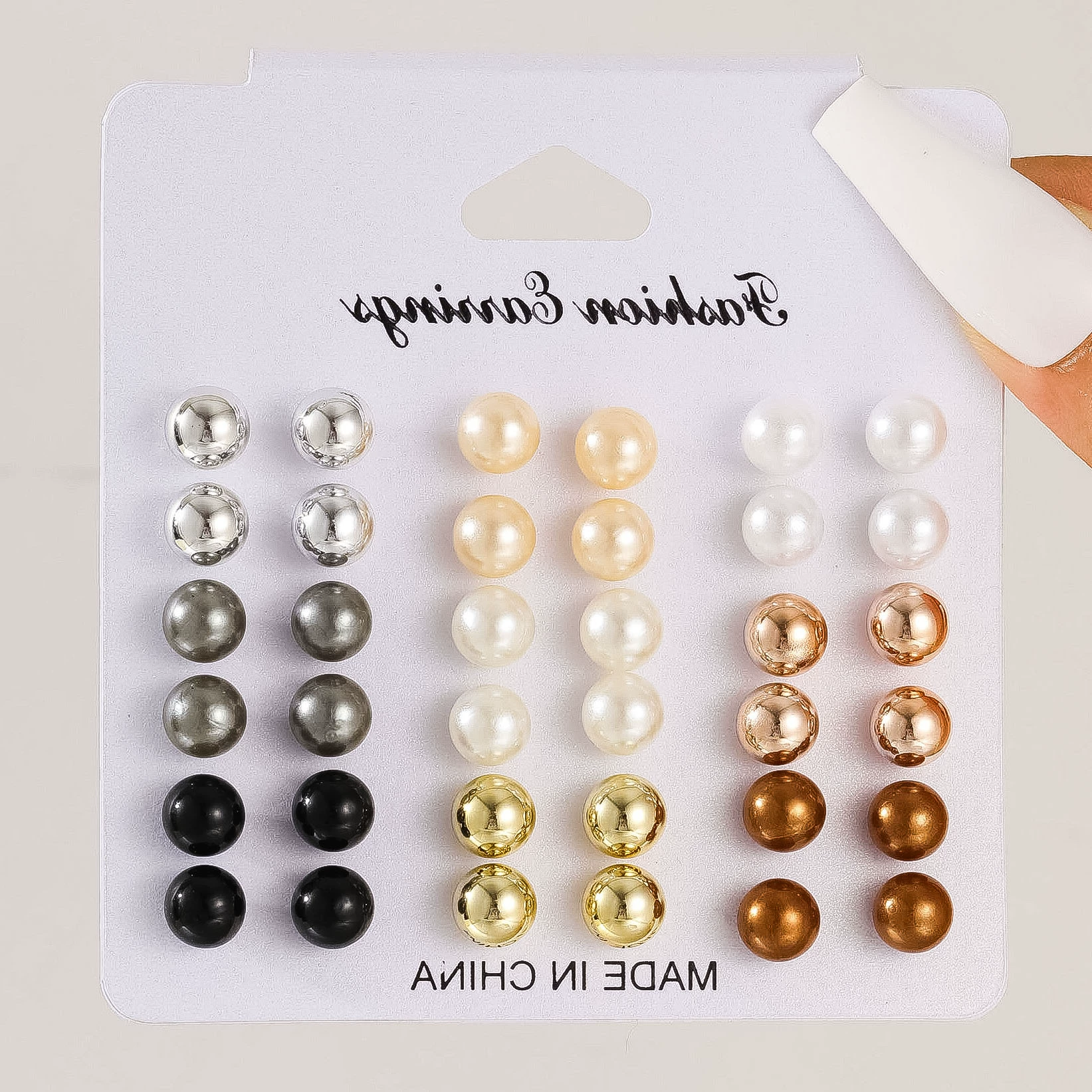 Earrings set 18 pieces earrings one card set simple commuter pearl earrings set 18 pieces