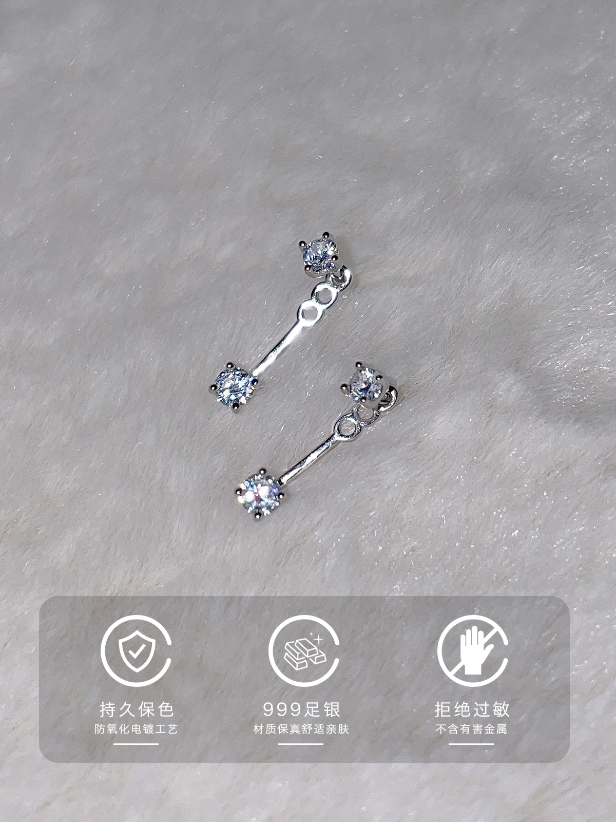 Earrings sterling silver 999 Ear -pierced earrings Female niche design High -level sensation after hanging super glittering stones temperament earrings