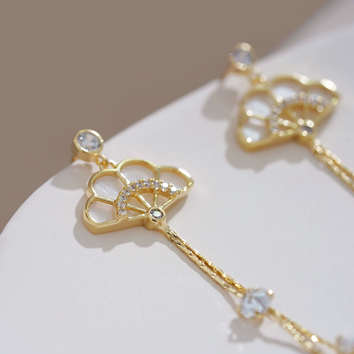 | nameOriginal | Earrings suitable for matching cheongsam, fan-shaped long tassel earrings, high-end retro French Hepburn style earrings, super fairy |