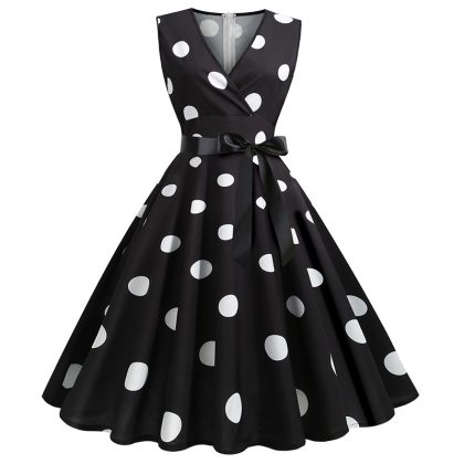 | nameOriginal | ebay AliExpress Explosions Retro Hepburn Style Waist Large Swing Printed Polo Dot Dress with Belt |