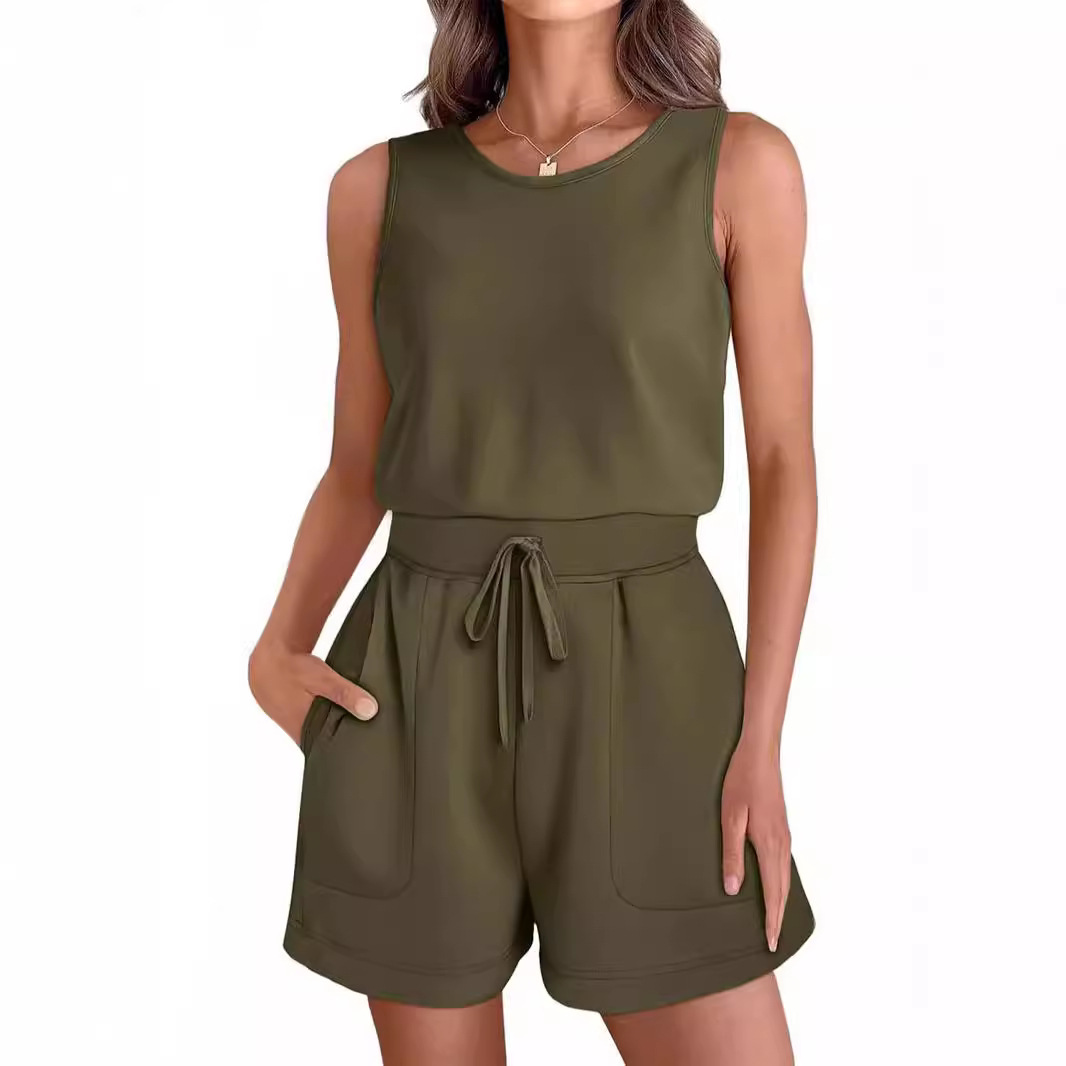 | nameOriginal | Ebay Amazon 2024 Spring and Summer New Foreign Trade European and American Fashion Sports Drawstring Vest Jumpsuit Shorts Fitness Clothes |