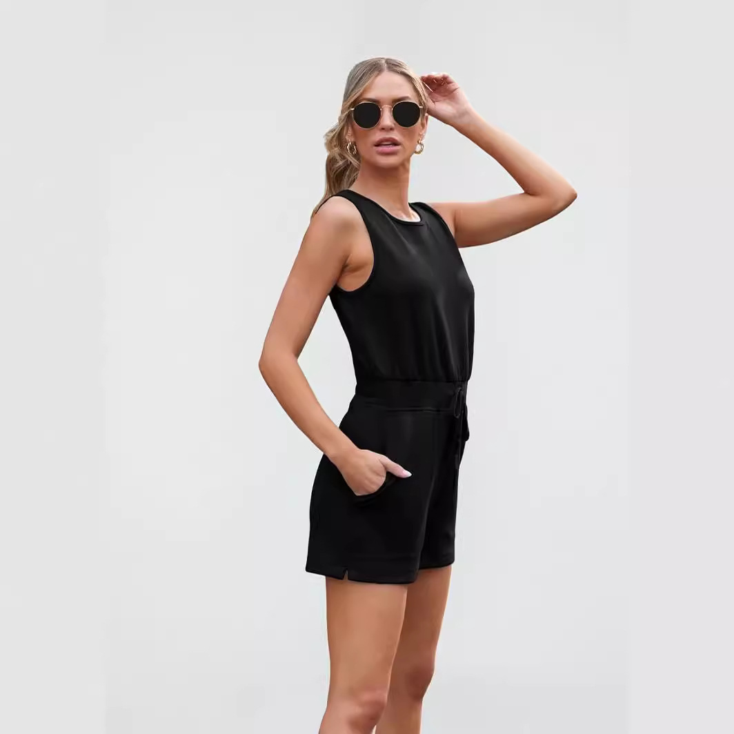 Ebay Amazon 2024 Spring and Summer New Foreign Trade European and American Fashion Sports Drawstring Vest One-piece Shorts Fitness Clothes