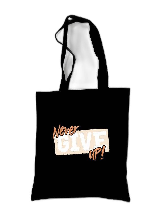 Eco-friendly Black Cotton Tote Bag for Shopping and Shoulder Use – Never Give Up.