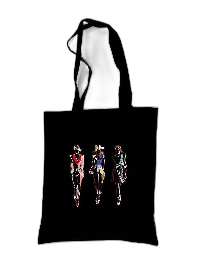 Eco-friendly Black Cotton Tote Bag for Shopping and Shoulder Wear in White Fashion.