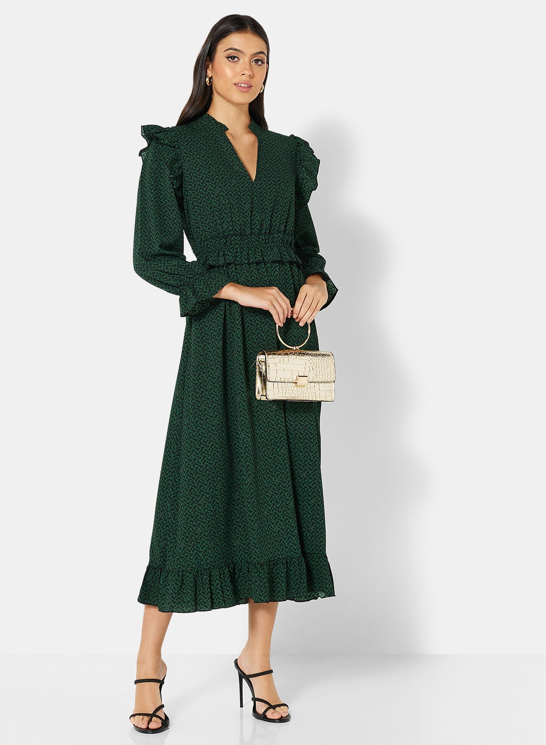 | nameOriginal | Recycled Ruffle Midi Dress |