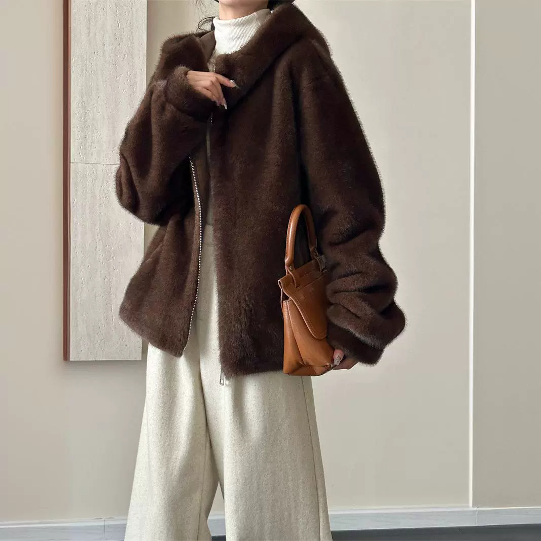 | nameOriginal | Eco-Friendly Mink Hooded Zipper Solid Color Shoulder high quality Imitation Mink Coat Ferry Mink Coat Warm Autumn and Winter New Top |