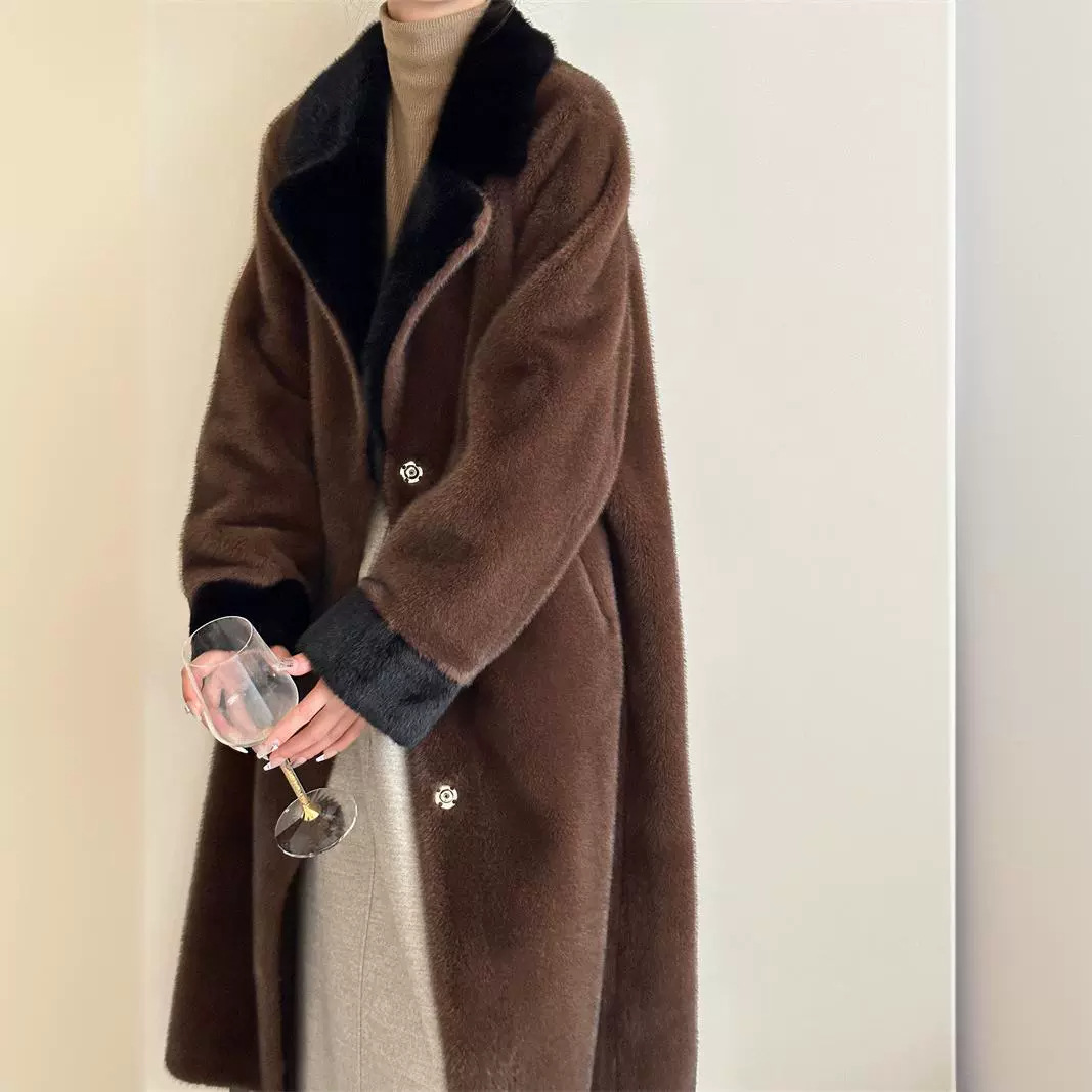 | nameOriginal | Eco-friendly Mink Large Lapel Color Contrast Single-breasted Imitation Mink Coat High-grade Sense Cherry Mink Coat Warm New for Autumn and Winter |