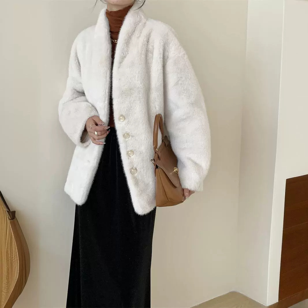 | nameOriginal | Eco-friendly Mink Solid Color Stand V-neck Single-breasted Shoulder Sleeve Faux Fur Imitation Mink Coat Ferret Coat Warm Winter |