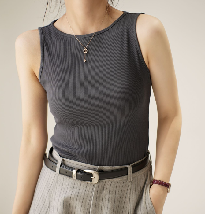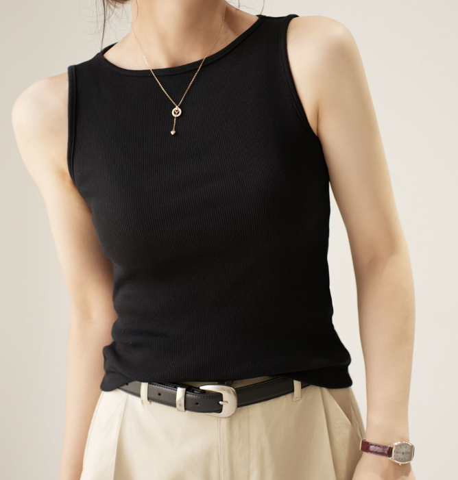 | nameOriginal | Ecos Women's One-line Collar Vest Sleeveless T-shirt Elastic Slim Thin Thin Threaded T-shirt Summer Half Sleeve |