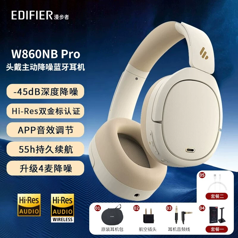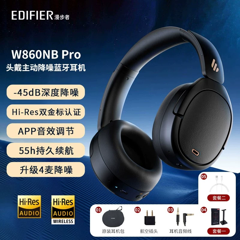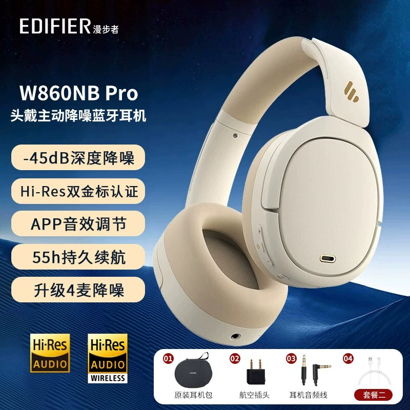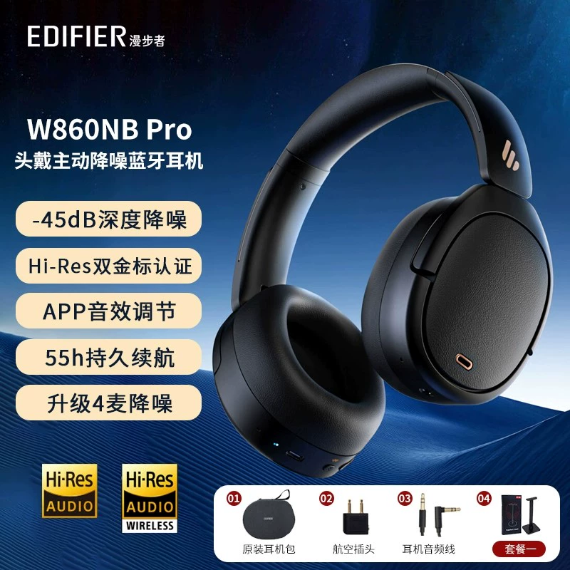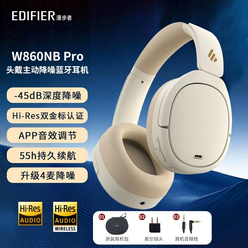 Edifier W860NB Pro head-mounted wireless active noise reduction double gold label Bluetooth headset online class gaming headset