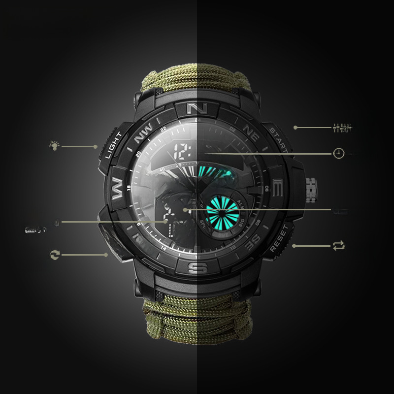 | nameOriginal | Edison luminous multifunctional compass watch outdoor mountaineering whistle Flint waterproof electronic men's watch wholesale |