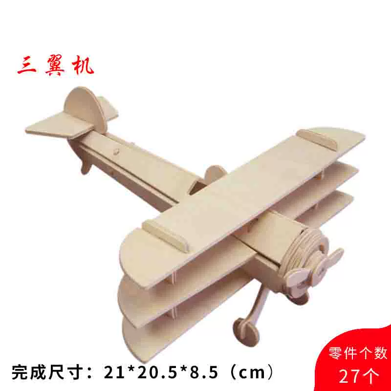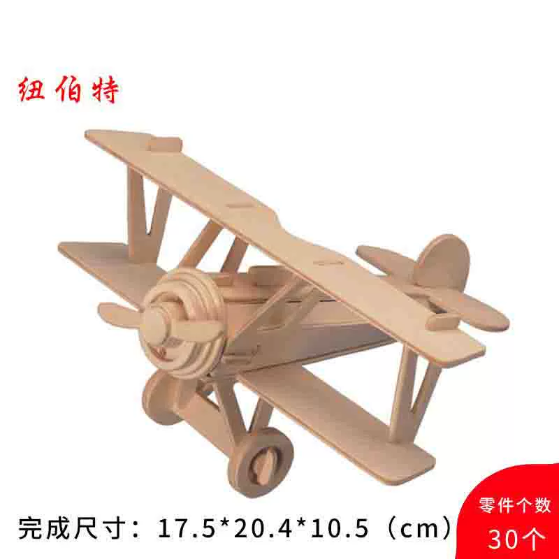 Educational children's building block toys 3D hand-made puzzle gift wooden three-dimensional puzzle wooden small airplane model