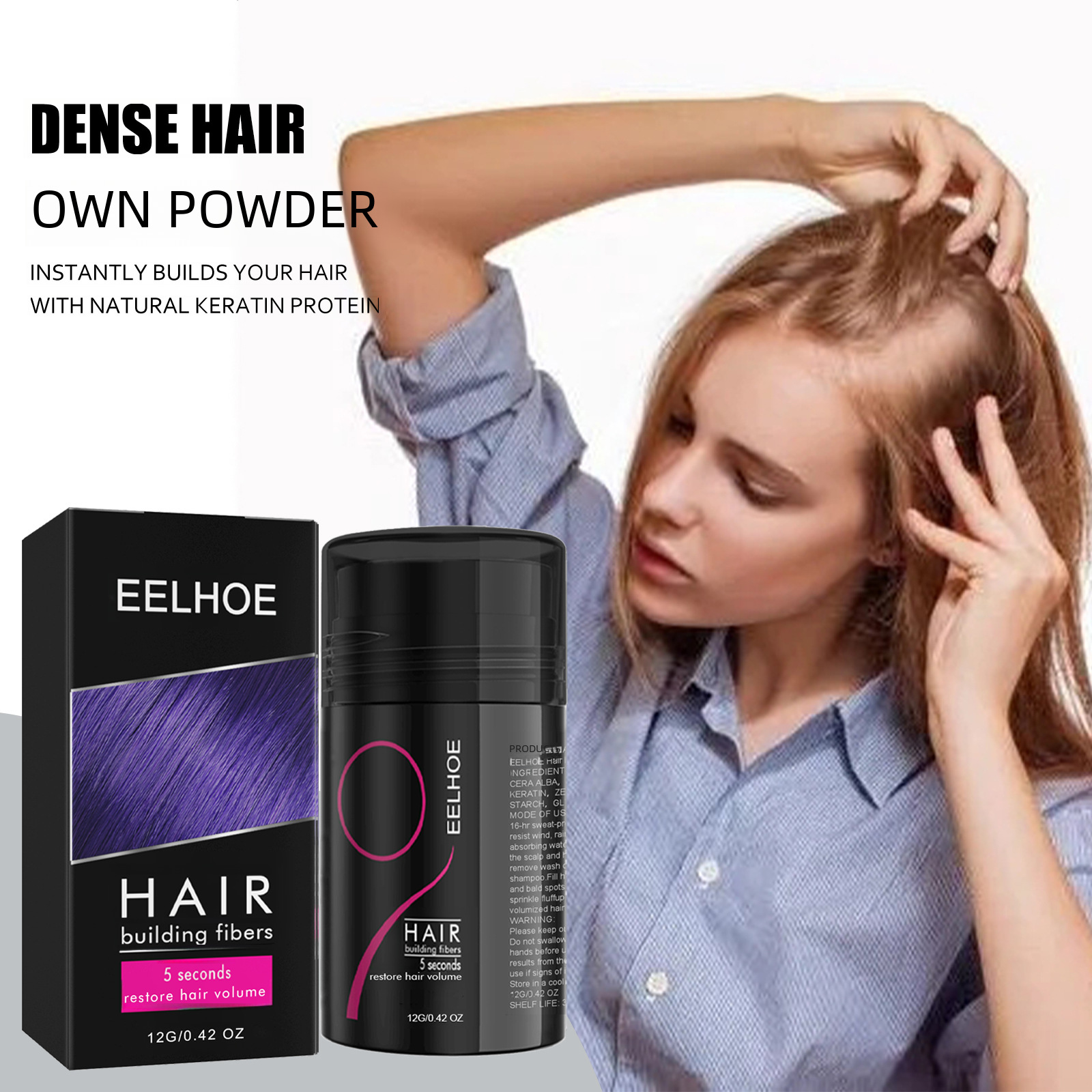 | nameOriginal | EELHOE Dense Hair Fiber Powder Hair Increase Hair Volume Fiber Dense Hair Beauty Powder Plant Fiber Powder |