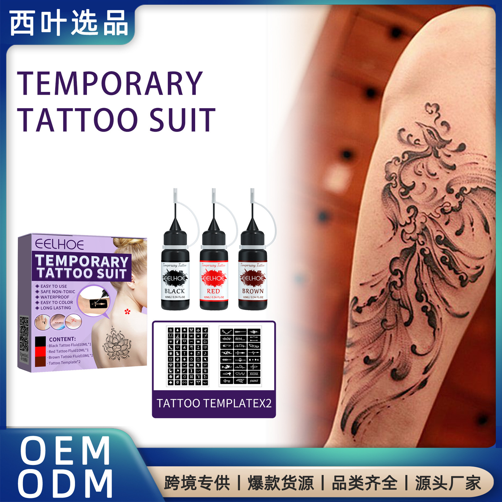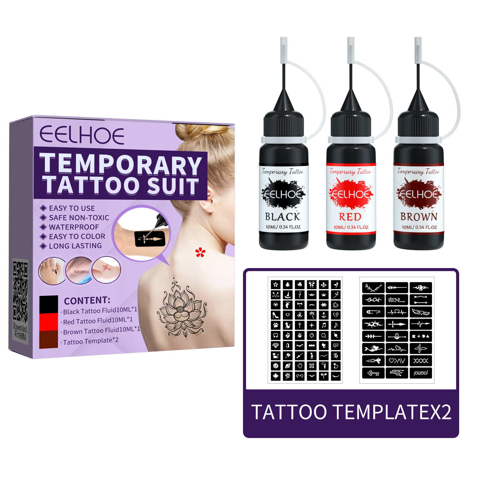 EELHOE Juice Tattoo Set Waterproof Lasting Temporary Juice Tattoo Liquid Hollow Pattern Tattoo Template