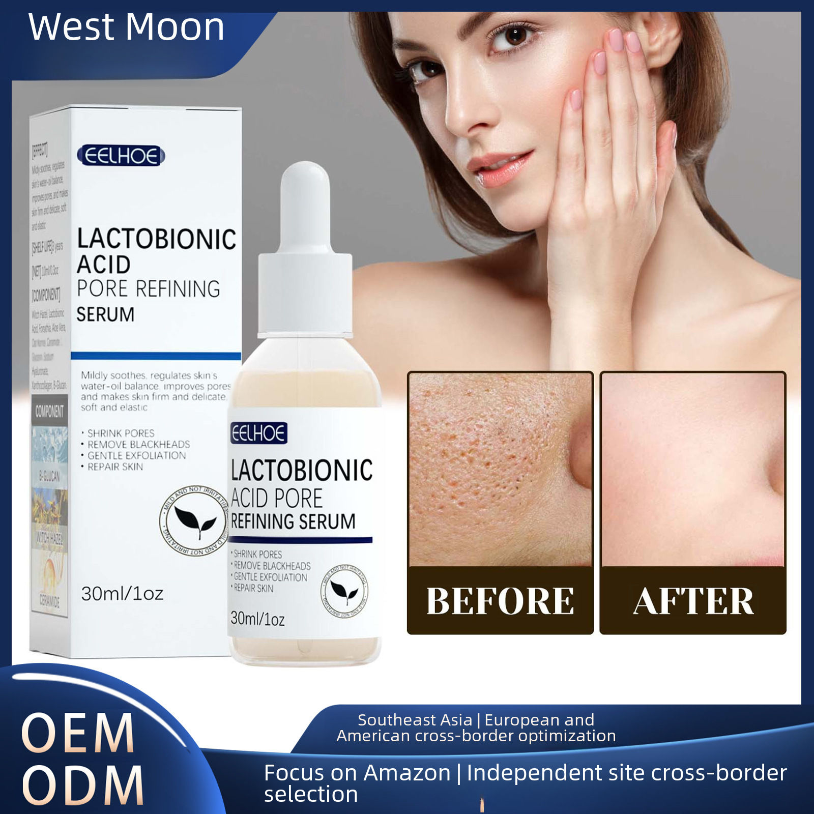 | nameOriginal | EELHOE lactobionic acid pore shrink essence skin elastic moisturizing delicate repair clean blackhead acne skin care |