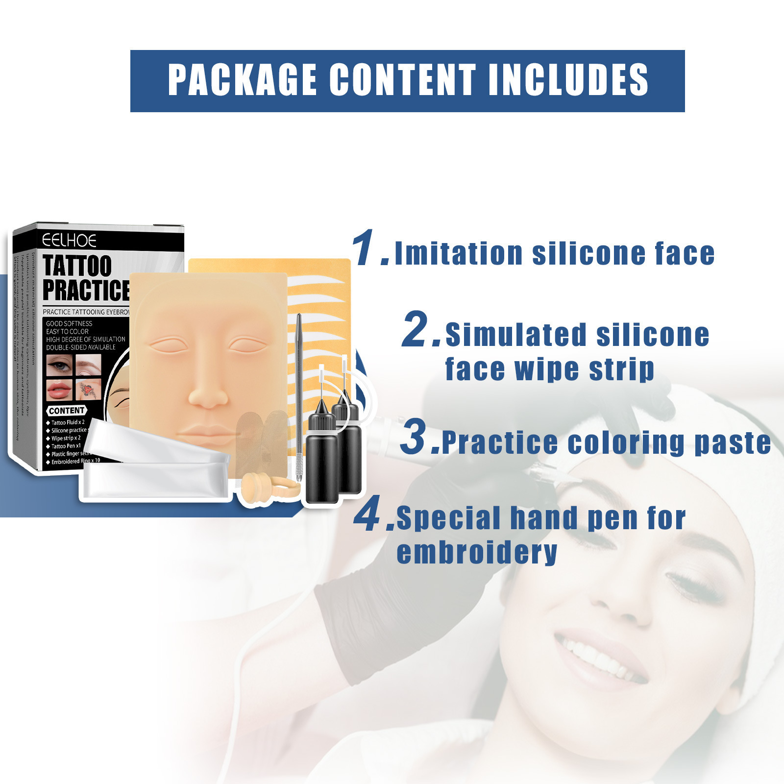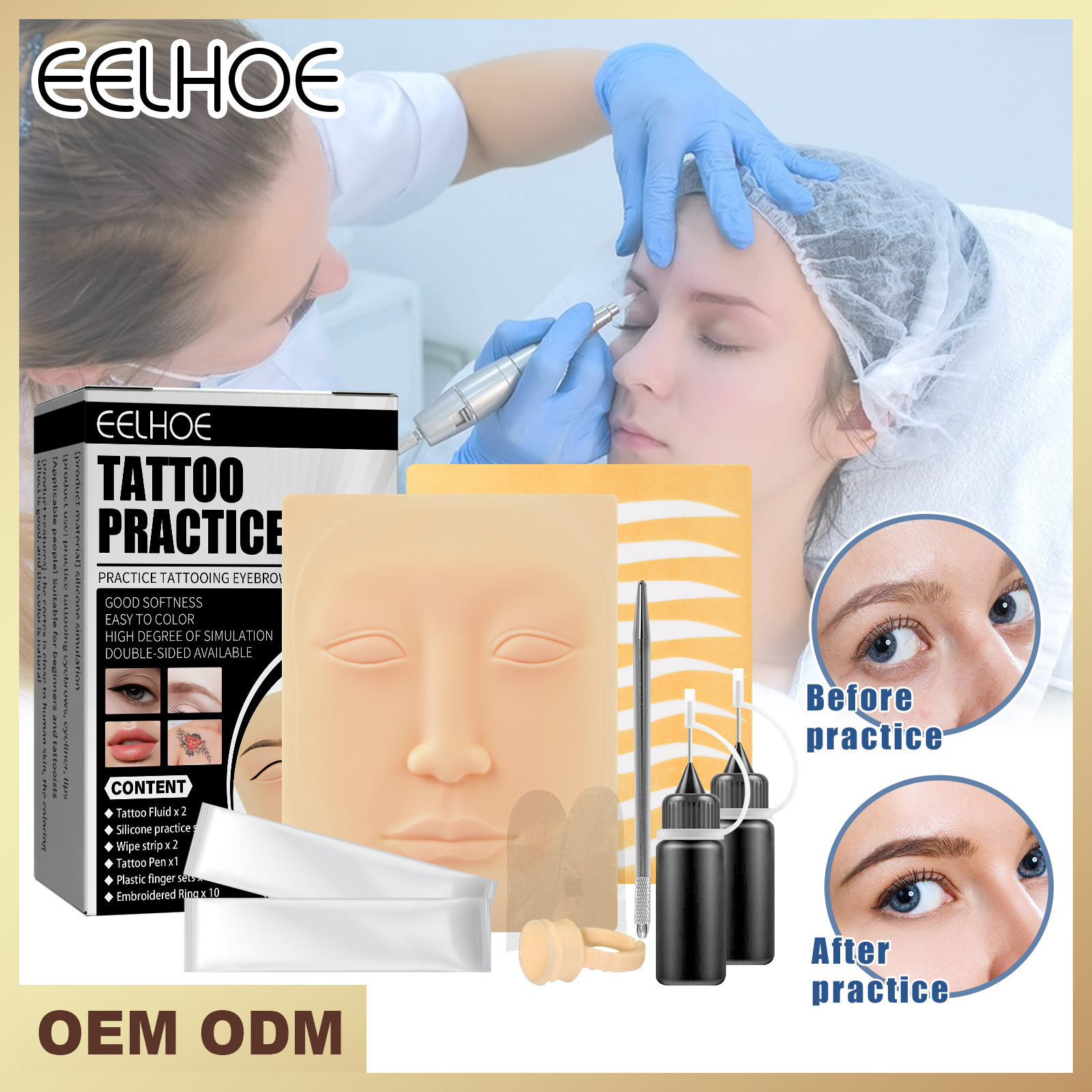 | nameOriginal | EELHOE tattoo exercise tool simulation exercise leather tattoo eyebrow eyeliner lip tattoo beginners wipe suit |