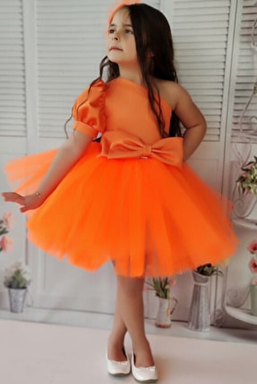 | nameOriginal | EFE KIDS Girls' Orange One Shoulder Open Watermelon Sleeve Geni Bow Detailed 6 Ply Tulle Dress |