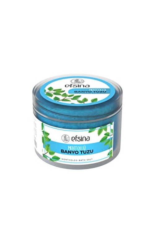 EfsinaBanyo Salt Menthol 250 g Relaxes your skin. Makes a firming effect on the skin. Tightens the skin. It is recommended by physicians for the treatment of various types of skin. Accelerates blood circulation in the skinAccelerates. Provides for the opening of pores. Effective in removing foot odor and tercoccus. Thanks to the minerals contained in sea salt, it allows the skin to become brighter and nourish. NetQuantity (g/ml) 250 ml Origin Manufactured in Turkey using domestic and imported raw materials. Table of contents Sodium Chloride, Menthol, TocopheryLacetate, CI 42090, Cl 19140 Warnings For external use only. Do not contact with the eyes, if it comes into contact with plenty of water. Keep the lid tightly closed in places out of reach of children. Store in a dry and cool place, protecting from heat and light. Perform an in-wrist test before use. Do not use if you are allergic to any raw materials contained in it. People with sensitive and allergenic skin should study the content information and consult their doctor. It is for adults. Storage Conditions Keep in a cool and dry environment. Food Operator /Producer/Importer/Distributor ESTUZ ESKİŞEHİR TUZ GIDA SAN.VE TİC.A.Ş.