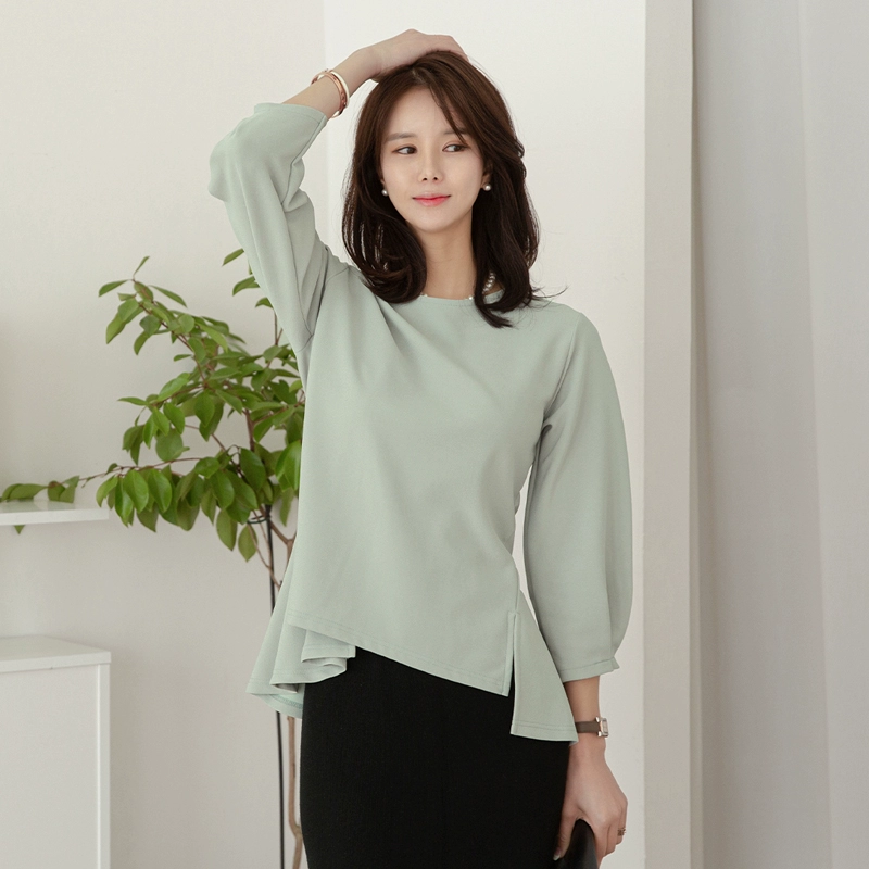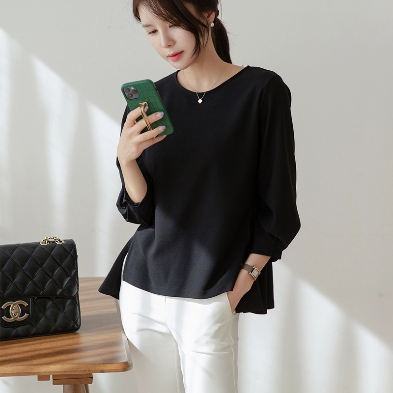 | nameOriginal | Eight-quarter sleeve loose ruffled A-line large size slimming T-shirt |