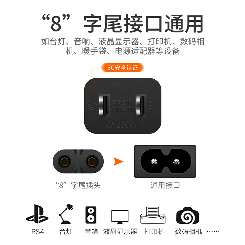 | nameOriginal | Eight-tail power cord high-power oxygen-free copper computer rice cooker projector display 8-tail power cord |