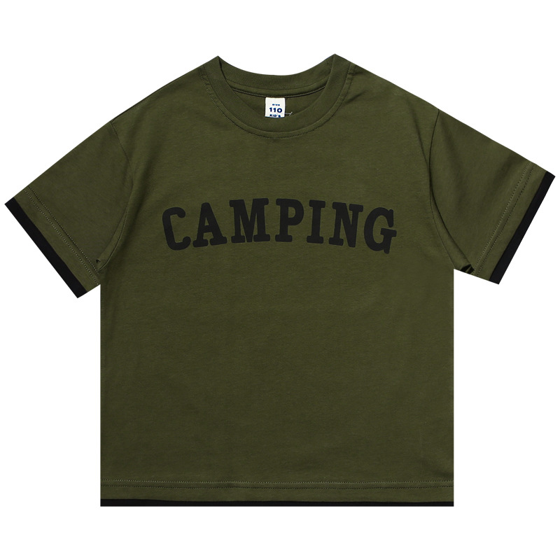| nameOriginal | EK children's clothing Japanese retro boys' fake two-piece cotton loose short-sleeved T-shirt medium and large children's fashionable top t |