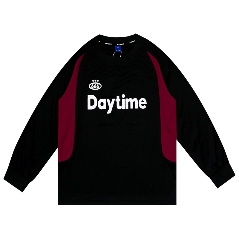 EK children’s hip hop boys’ loose breathable long-sleeved T-shirt fashionable cool medium and small children’s color matching top