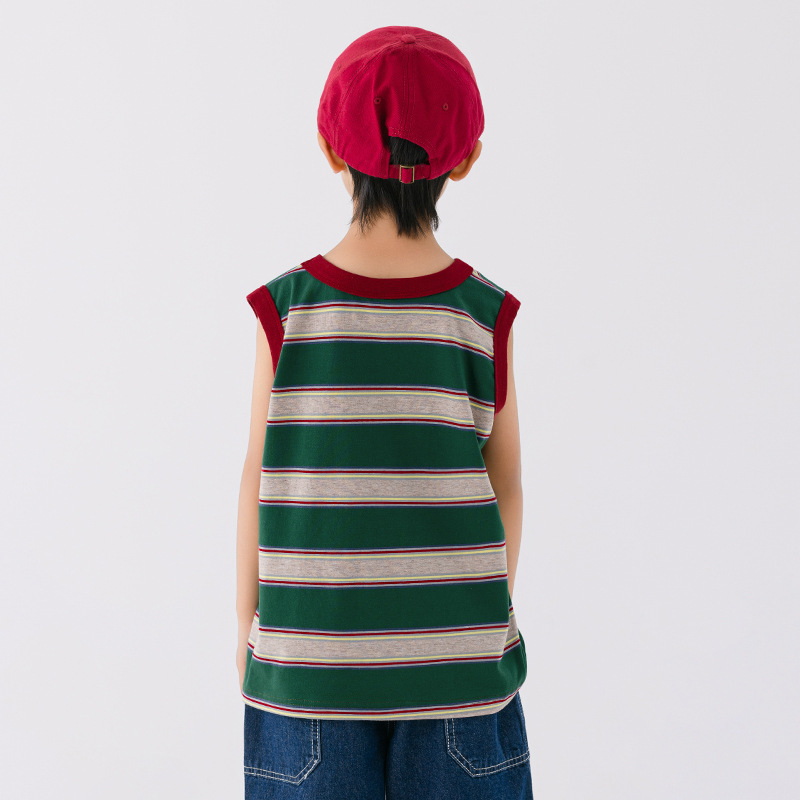 EK Children's Wear Japanese Striped Boys' Sleeveless T-Shirt Loose Large and Small Children's Stylish Personalized Top Vest Trendy Brand
