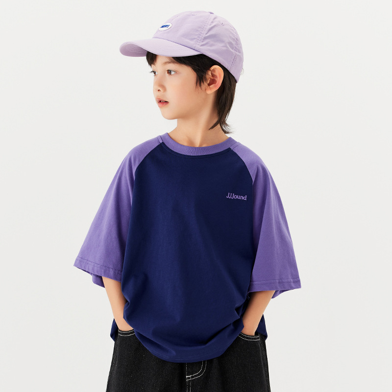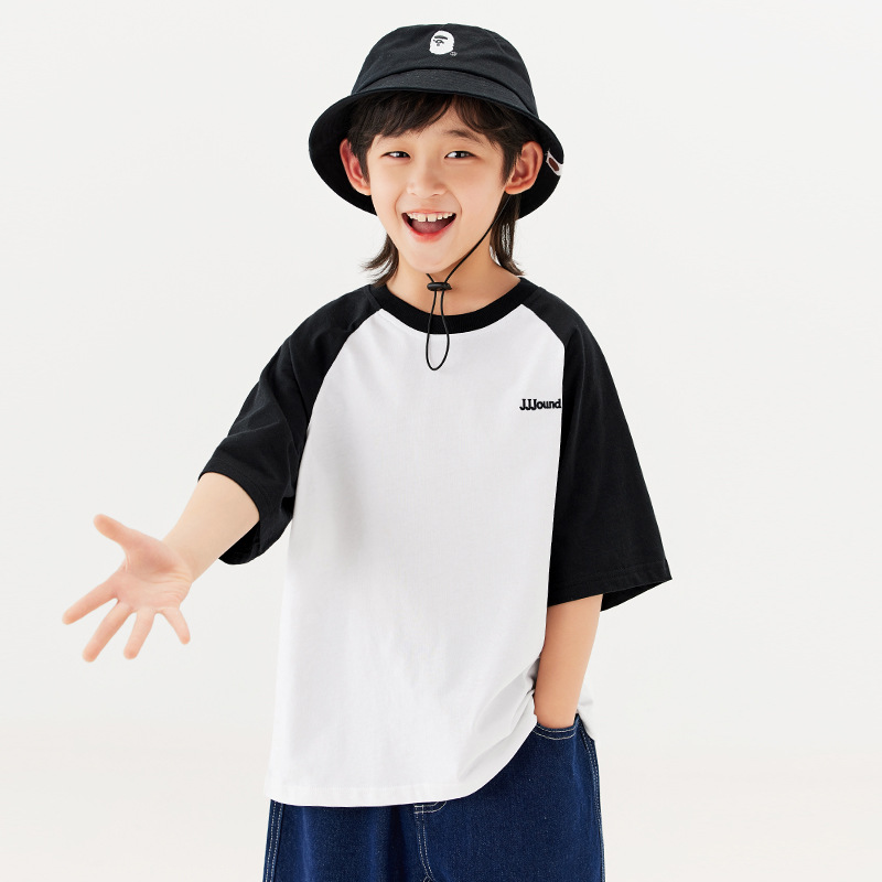 EK Children's Wear Stitching Contrast Color Boy's Loose Cotton Shoulder Short-Sleeved T-Shirt Big Children's Western Style Trendy Cool Top tee