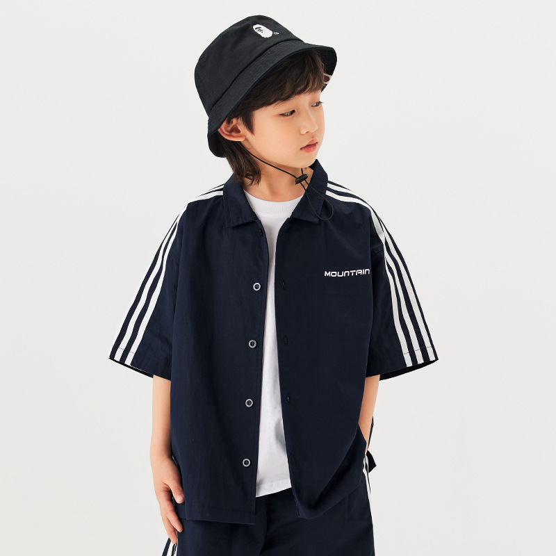 | nameOriginal | EK Children's Wear Summer New Loose Western Style Striped Three Short-sleeved Shirt Set Large Children's Short-sleeved Top |