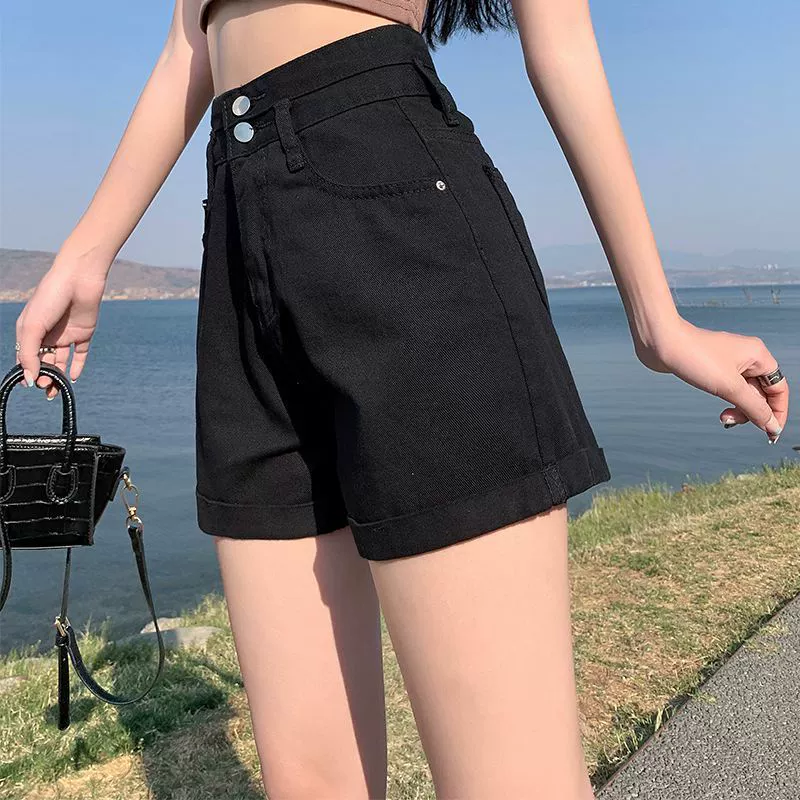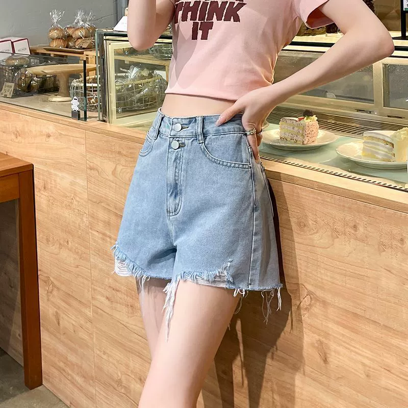 | nameOriginal | Elastic high waist Korean style student rolled hem denim shorts |