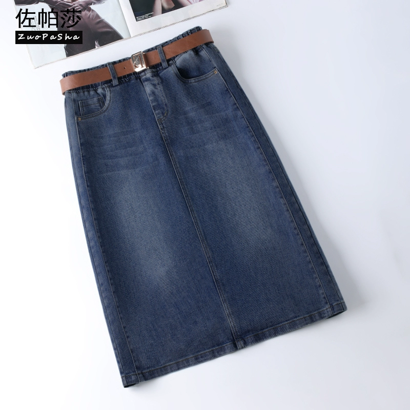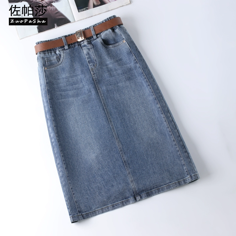 | nameOriginal | Elastic high-waisted denim skirt for women 2024 spring and summer new slimming slit a-line mid-length hip-covering one-step skirt |