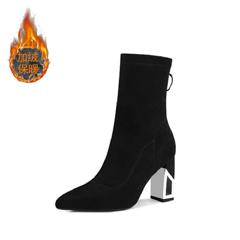 | nameOriginal | Elastic slim boots for women, autumn and winter high-heeled short boots, suede spring and autumn single boots, pointed toe socks boots, large size thick heel mid-calf boots |