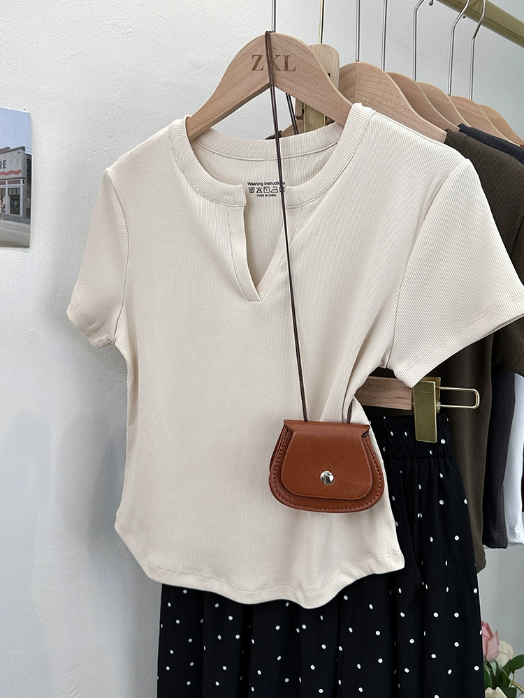 Elastic thread solid color good quality short-sleeved versatile T-shirt