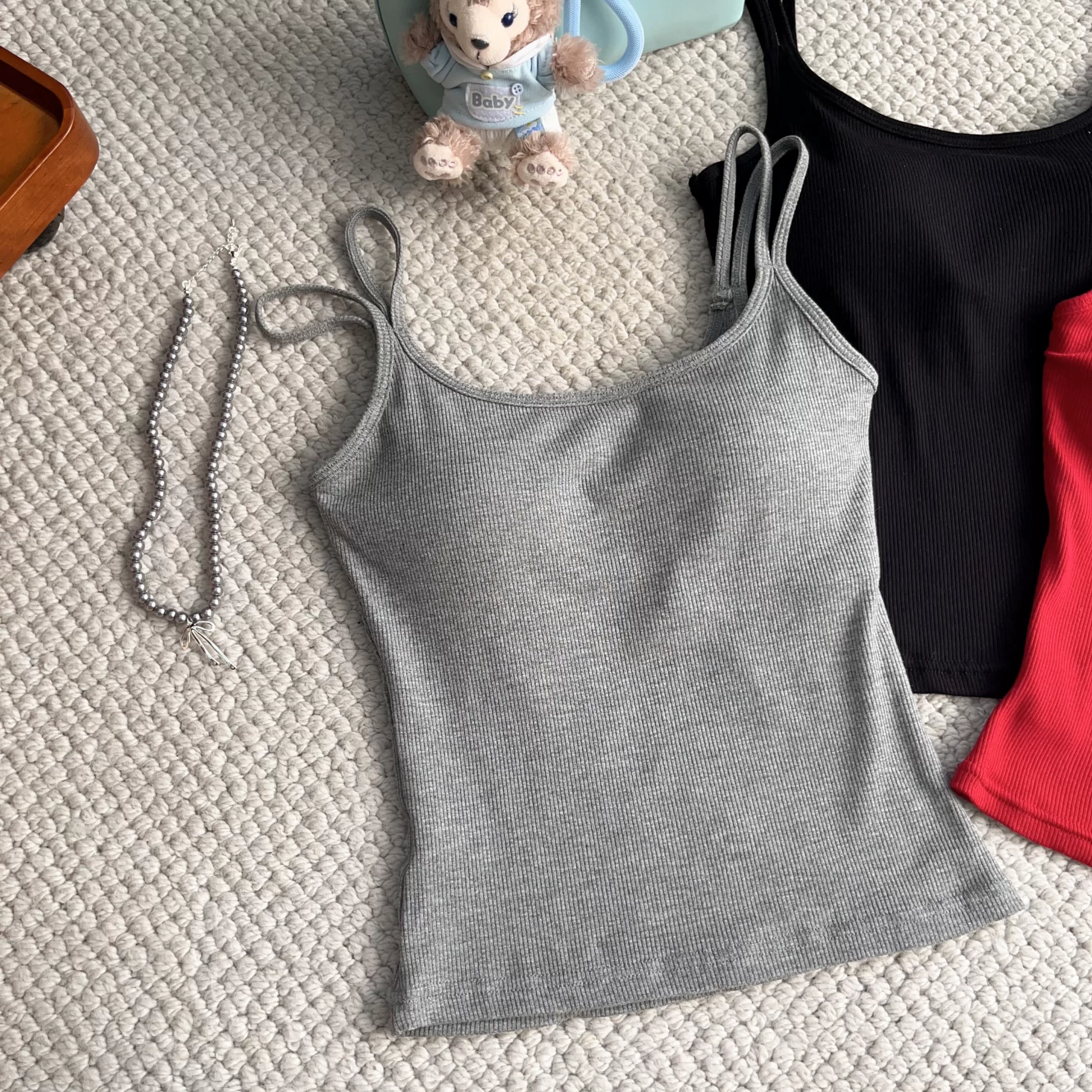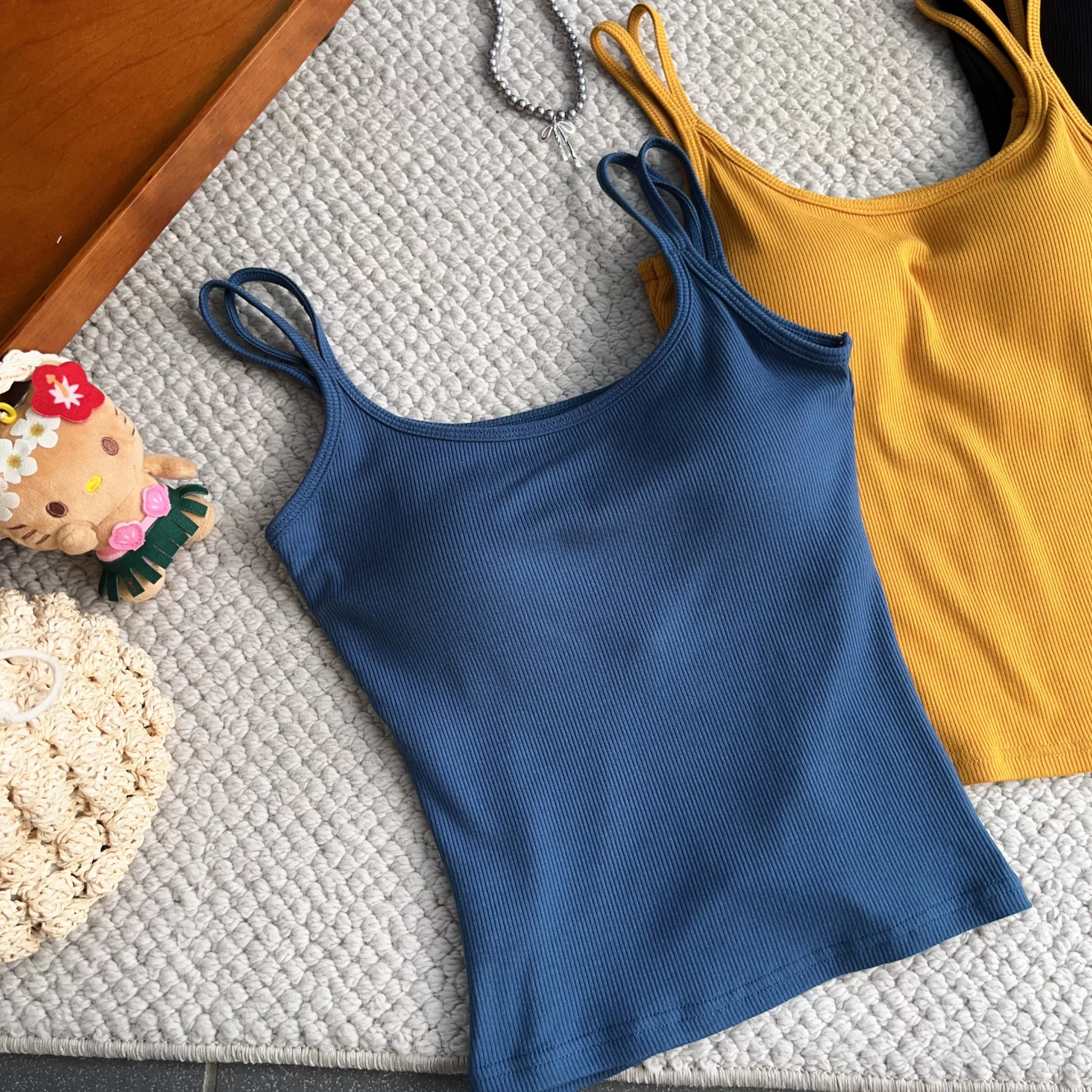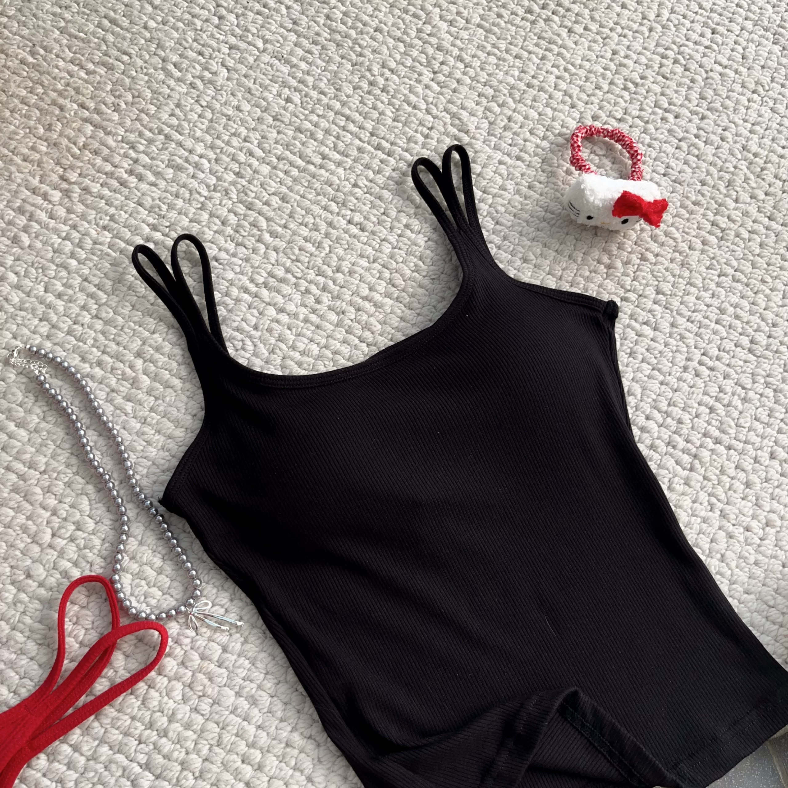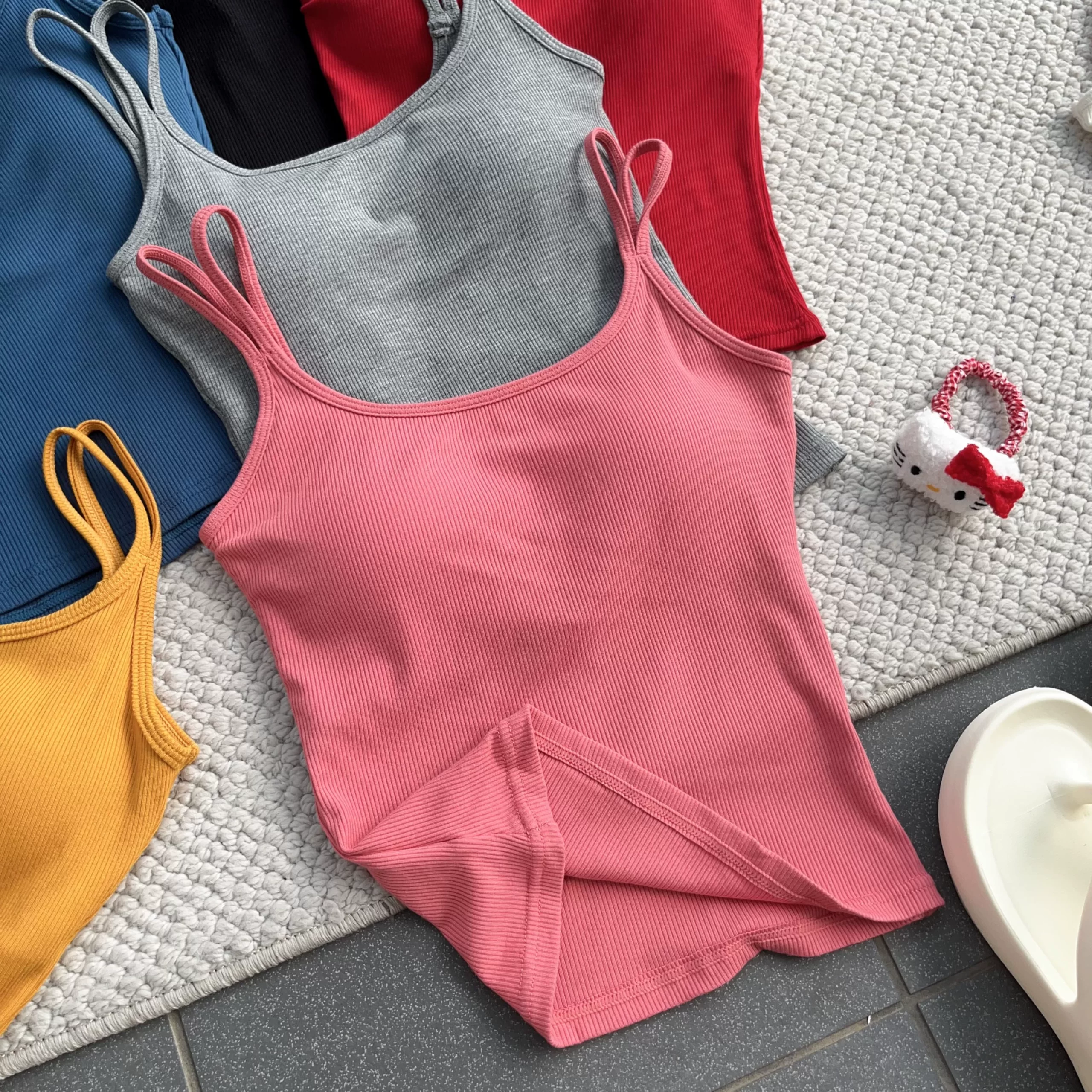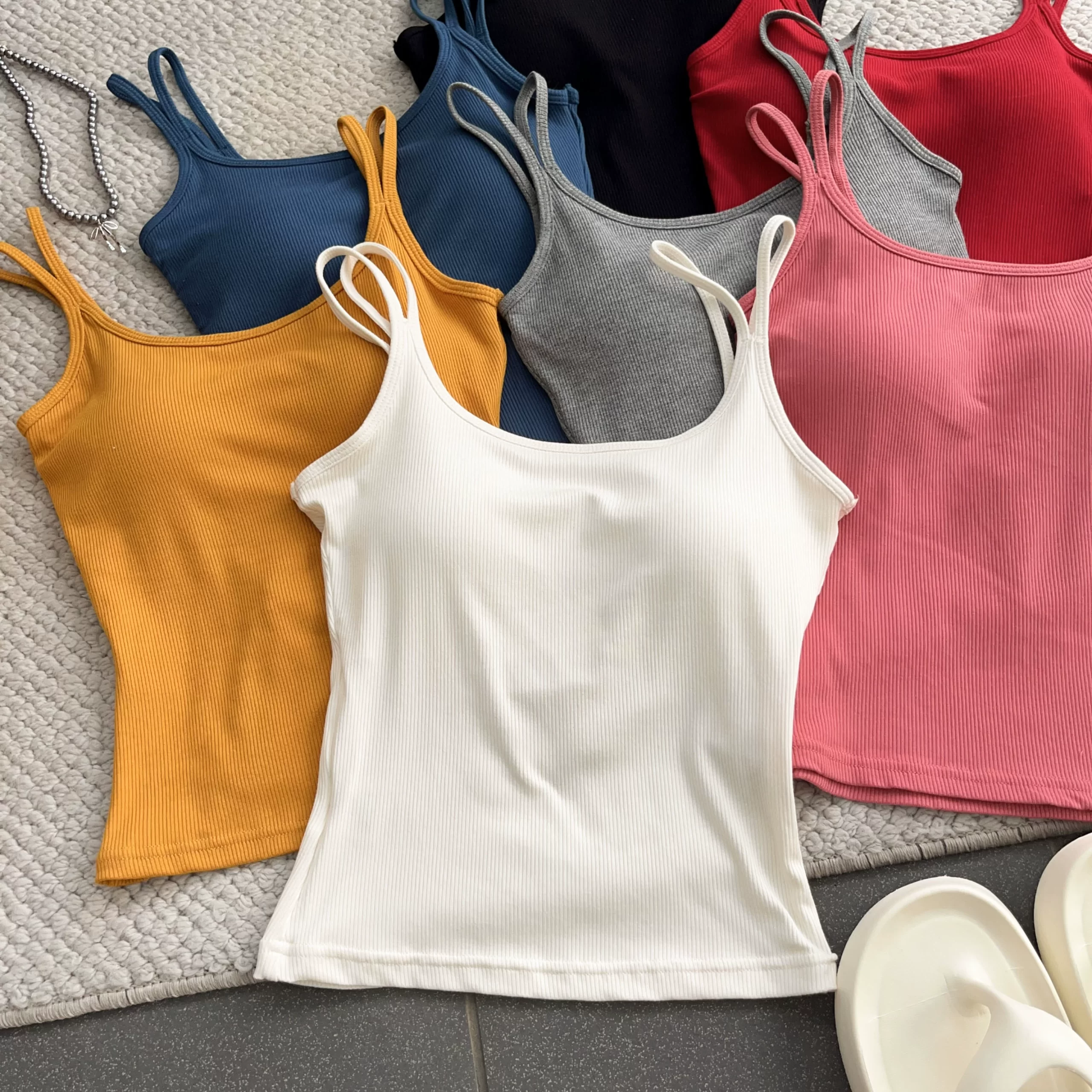 Elastic threaded one-piece short slim fit double shoulder strap chest pad