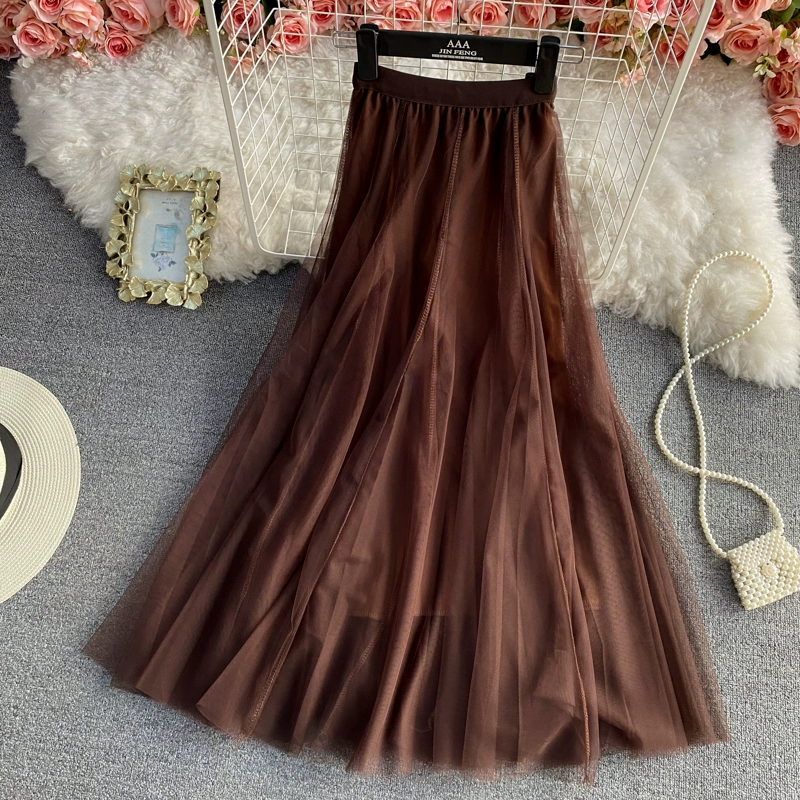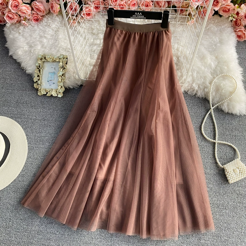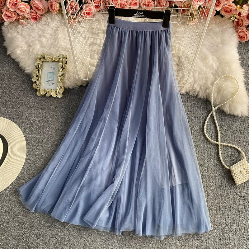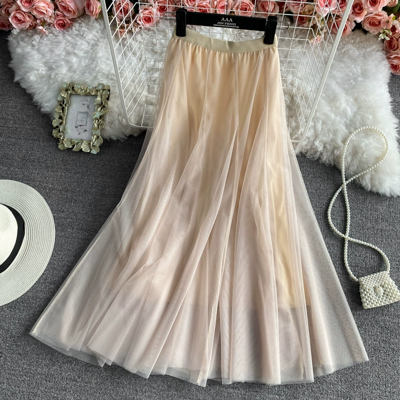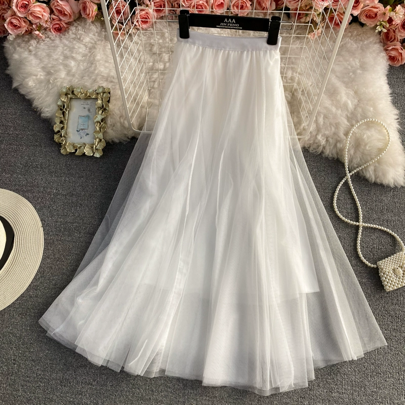 | nameOriginal | Elastic waist mid-length above-the-knee fairy mesh skirt |