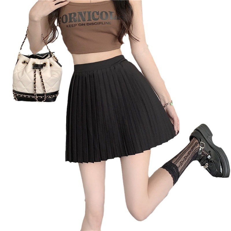 elastic waist pleated skirt short skirt high waist women’s skirt 2024 summer latest slimming all-match elegant short skirt ins