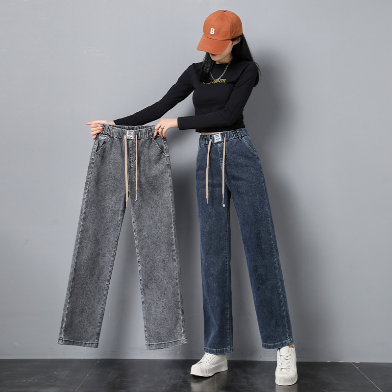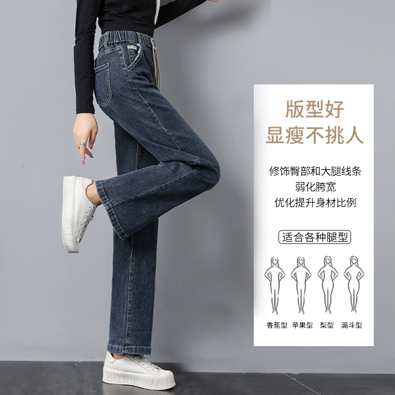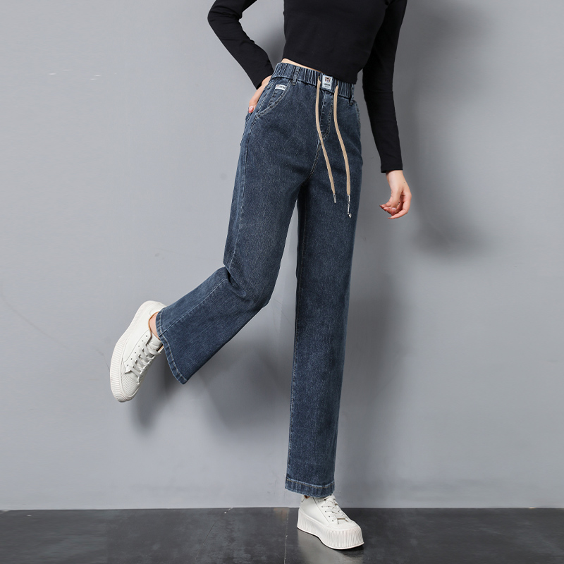 | nameOriginal | Elastic waist straight jeans for women 2023 new autumn and winter high waist plus size loose fleece-lined chubby girl wide leg pants |