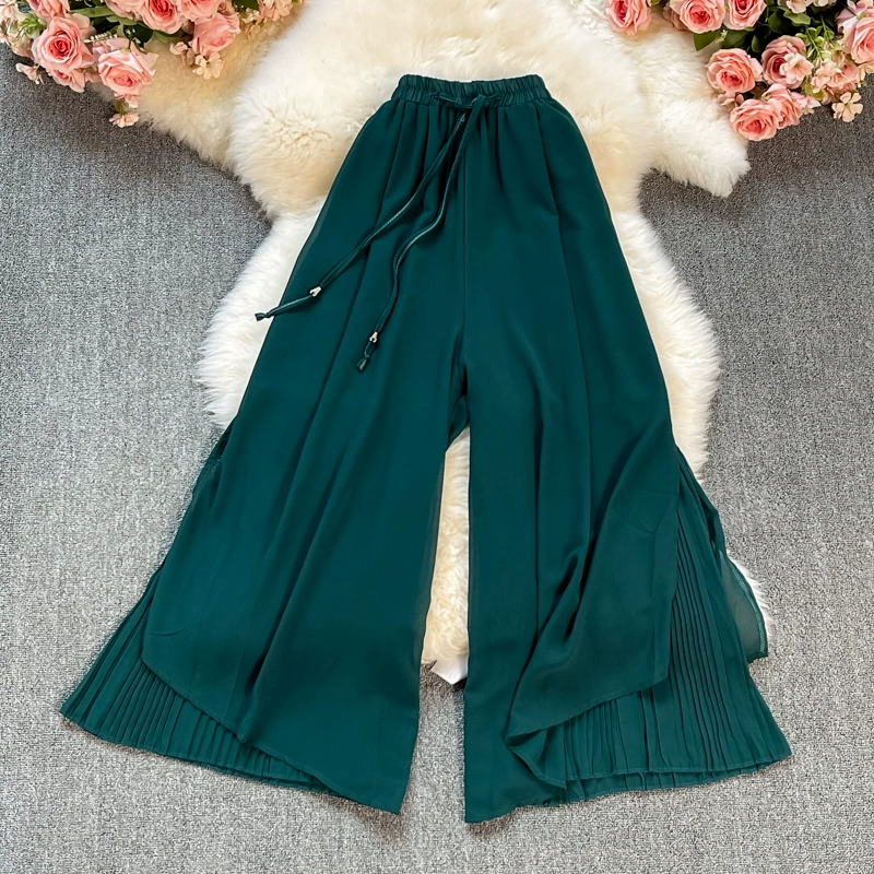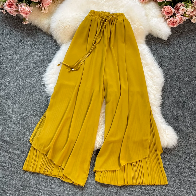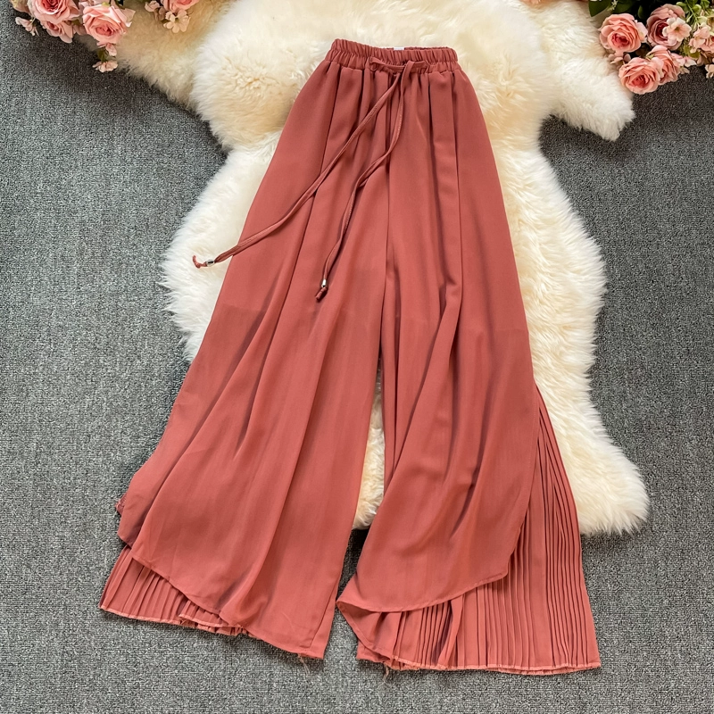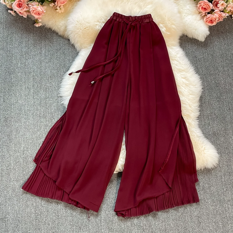 | nameOriginal | Elastic waisted draped summer chiffon thin wide-leg pants |