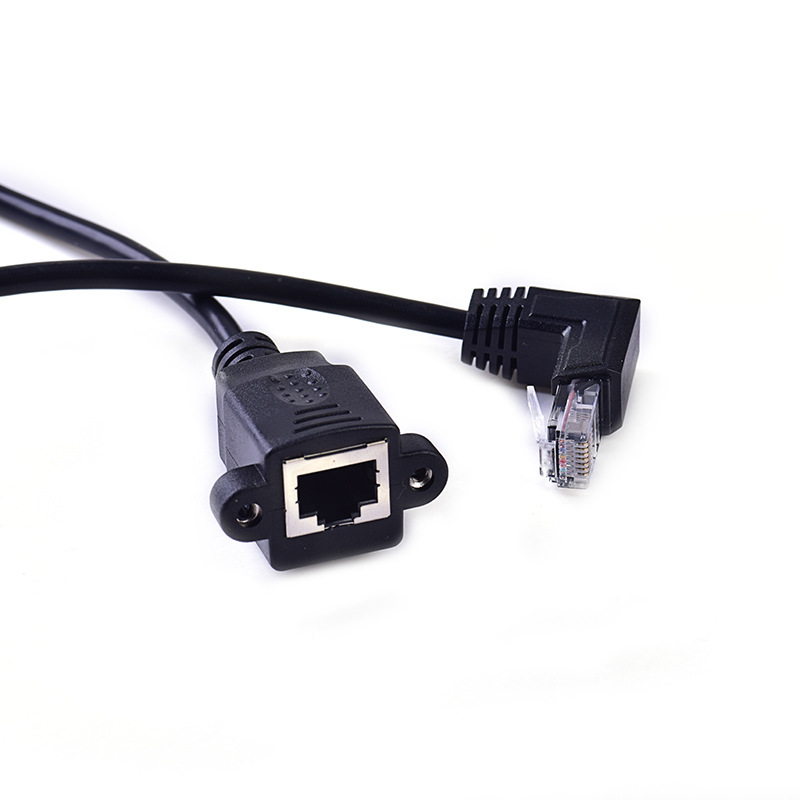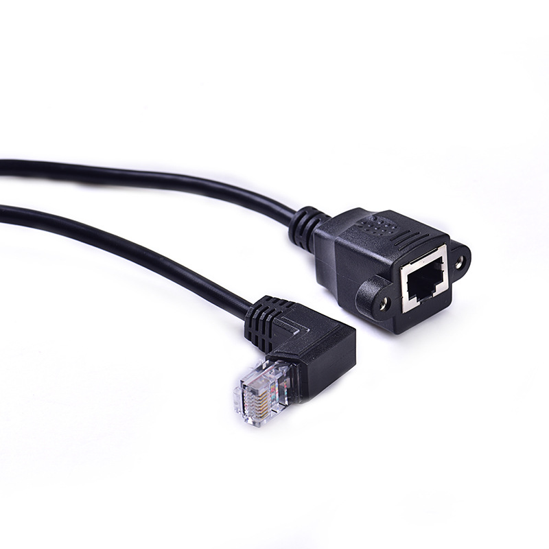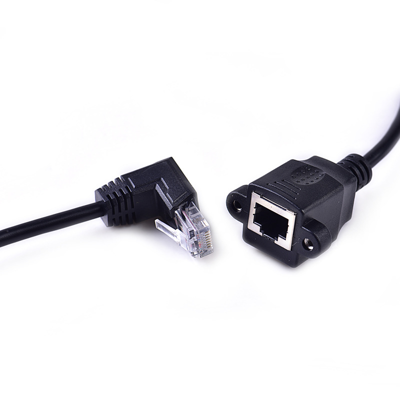 Elbow network cable extension line rj45 male turnkey with screw hole RJ45 male-to-female broadband network connector