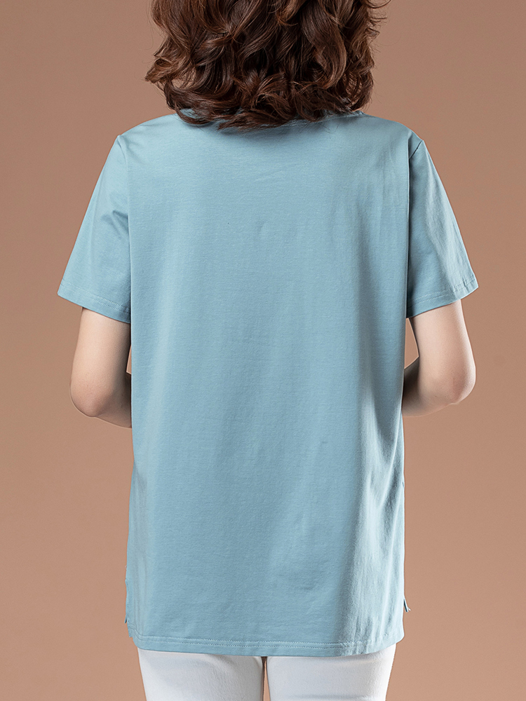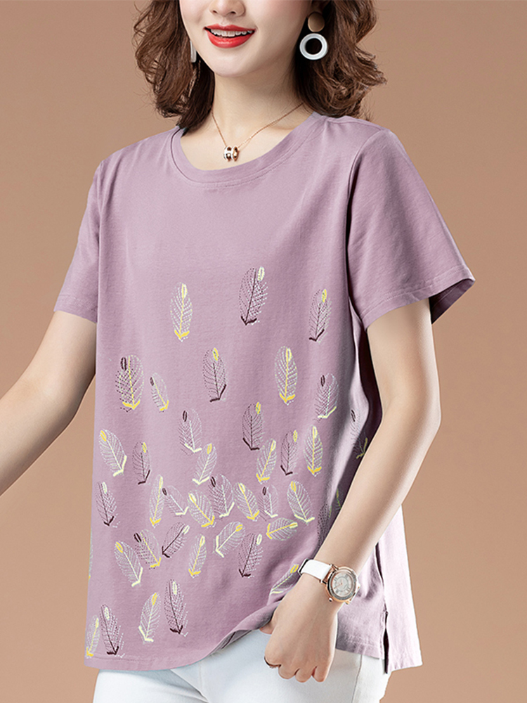 Elder People's Sweatshirt Cotton plus size Women's Pure Cotton Short-sleeved T-shirt Middle-aged Mother's Summer Clothes Belly-covering Top