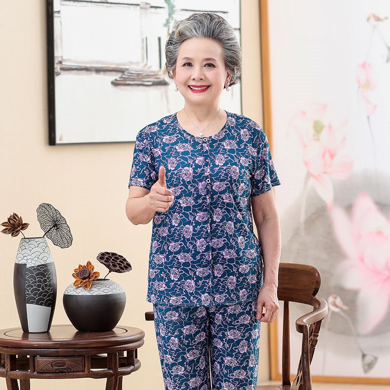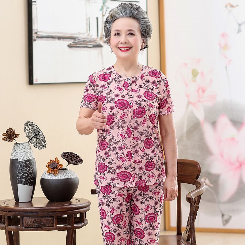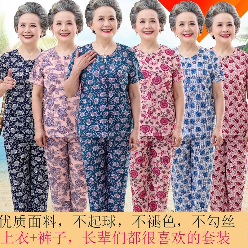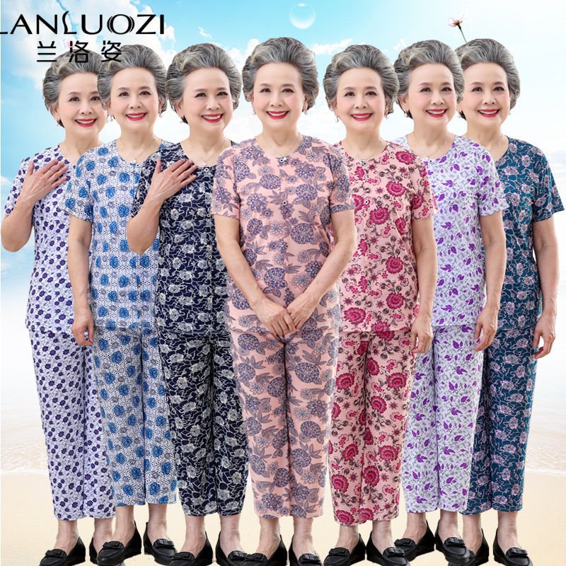 Elderly Clothes Women's Summer Clothes 70-80 Years Old Grandma suit Middle-aged and Elderly Women's Clothes Mother's Loose Elastic Two-piece Set