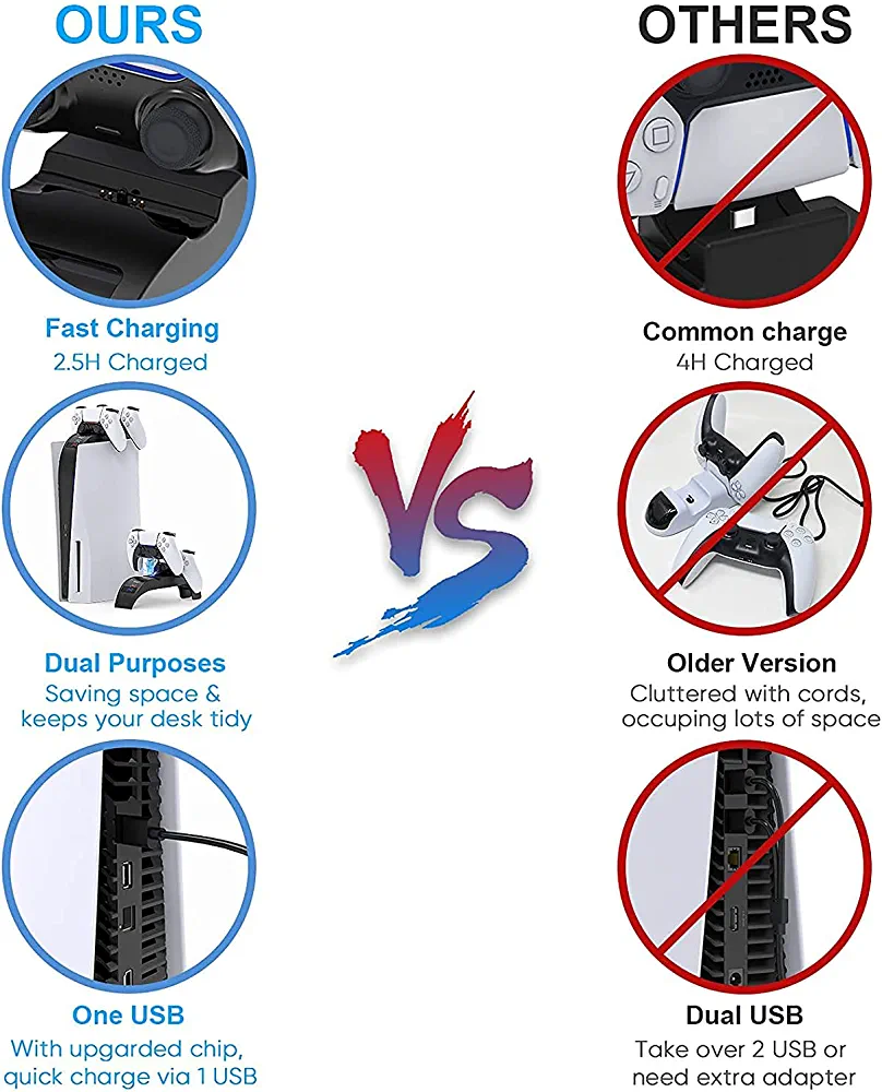 | nameOriginal | PS5 Charging Station for Sony Playstation 5 Dualsense Controllers, ELECDON [Add to Top] Upgraded Dual Purpose PS5 Controller Charger Station Dock Accessories with 2.5H Fast Charging |