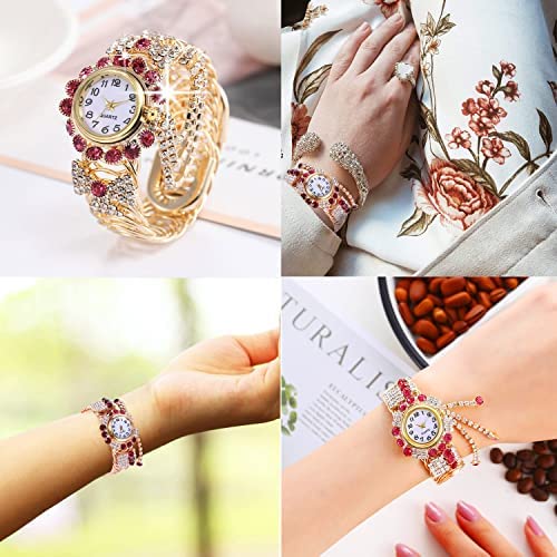 nameOriginal | Women's Watches, ELECDON Quartz Shiny Gold Watch with Crystal Rhinestones Diamonds, for Women Wrist Jewelry, Fashion Ladies Bracelet Bracelet Watch (Ruby) |