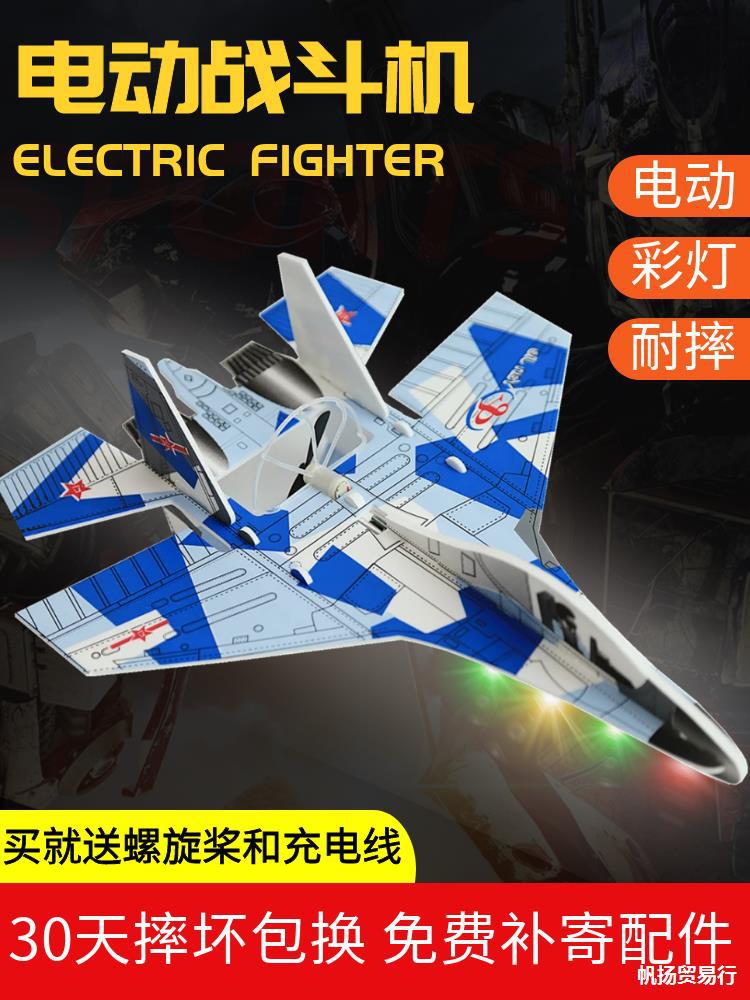 Electric foam fighter children's aircraft toy assembled model aircraft hand throw rechargeable colored lights outdoor glider