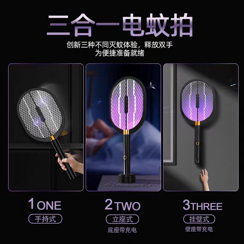 | nameOriginal | Electric mosquito swatter rechargeable household powerful three-in-one 2024 new mosquito swatter electric mosquito fly swatter artifact |