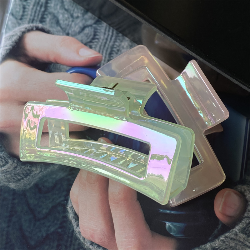 | nameOriginal | Electroplated AB color jelly square large hairpin bath dish hair clip fashion back head Clip 2 yuan physical store |