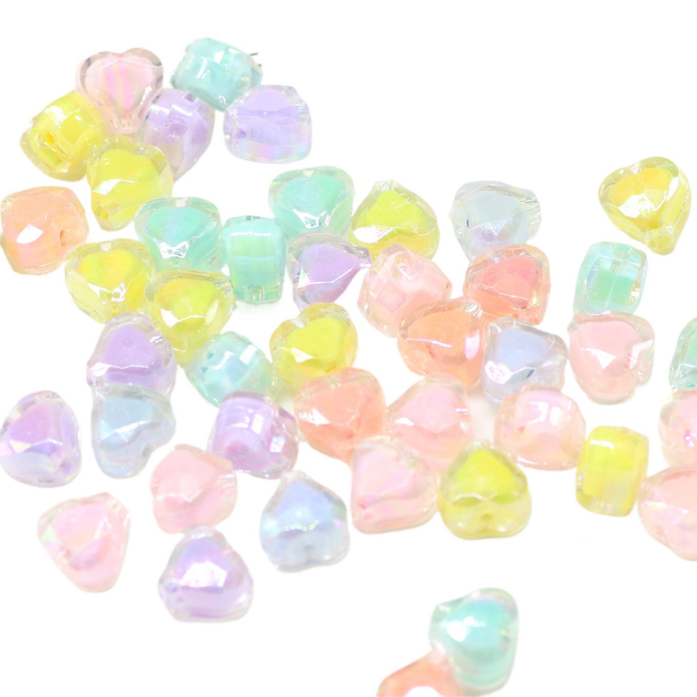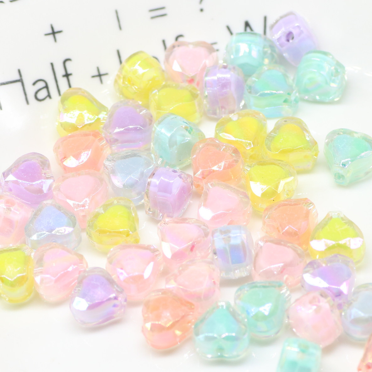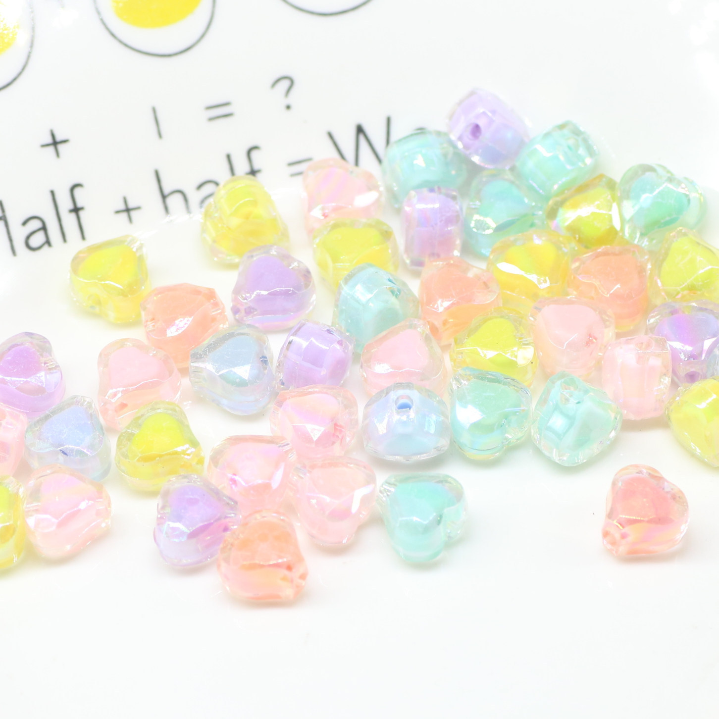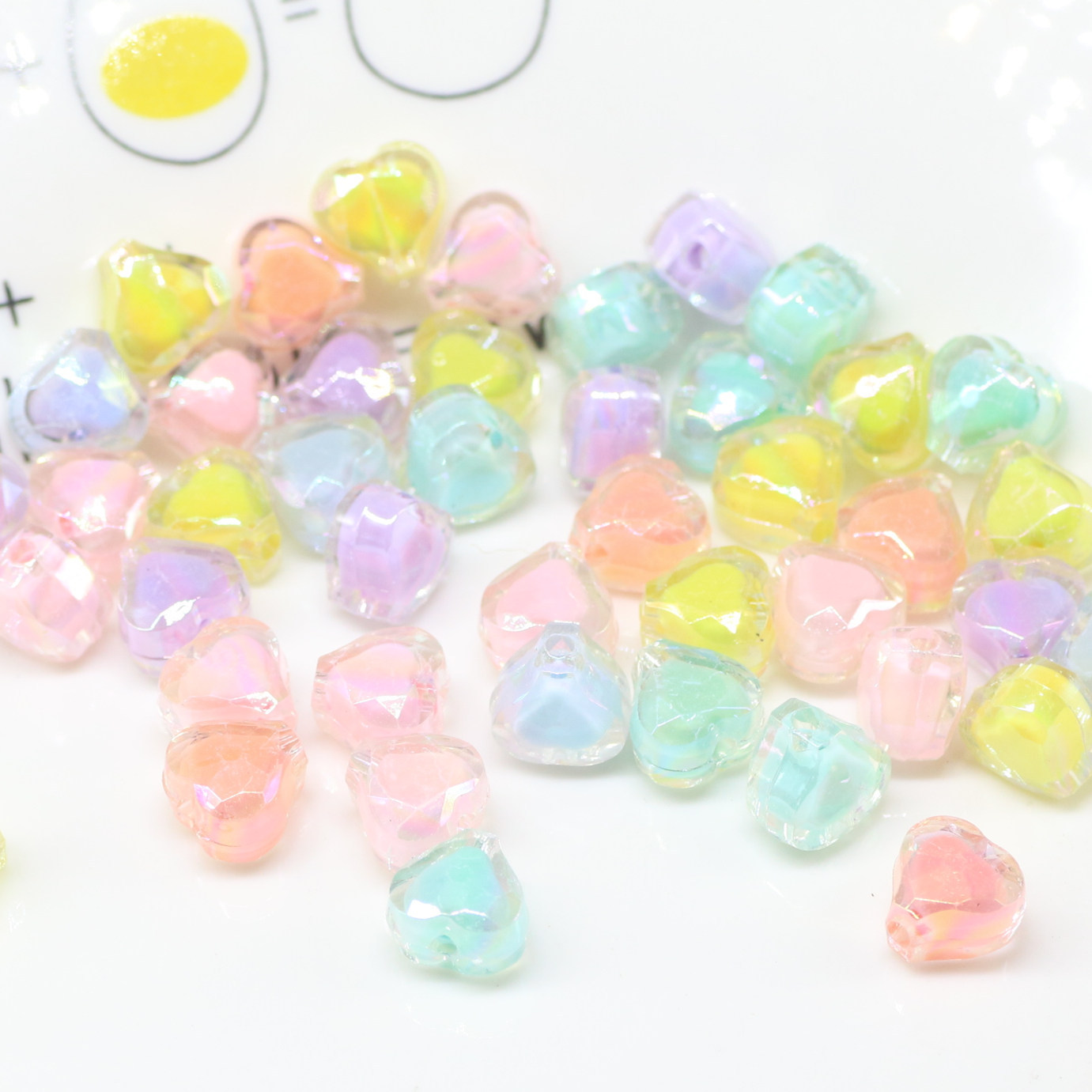| nameOriginal | Electroplated AB heart-shaped beads loose beads children's acrylic beads perforated heart-shaped handmade bracelet material |